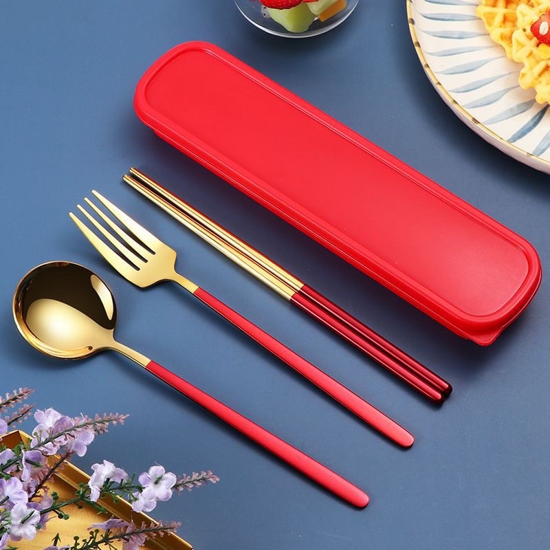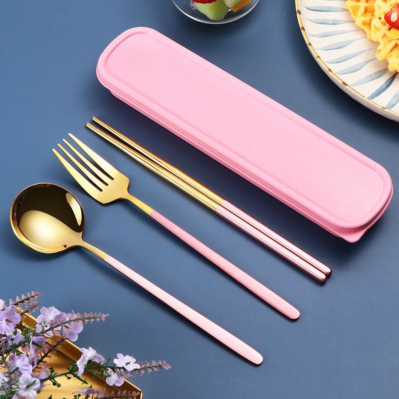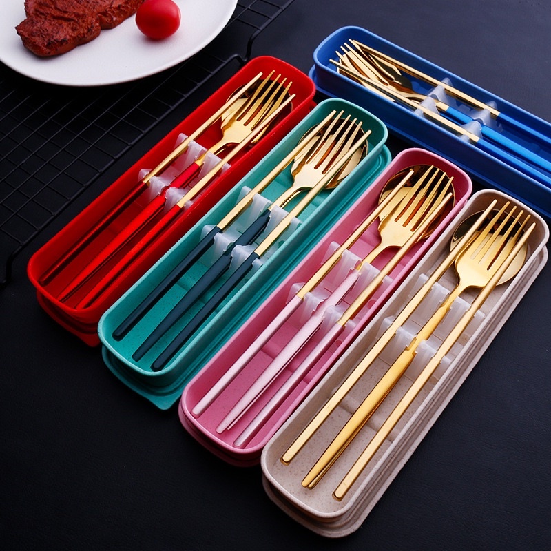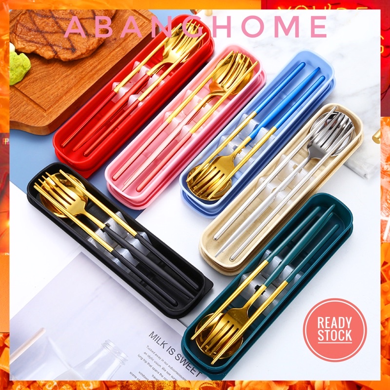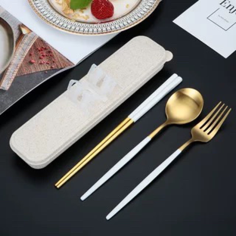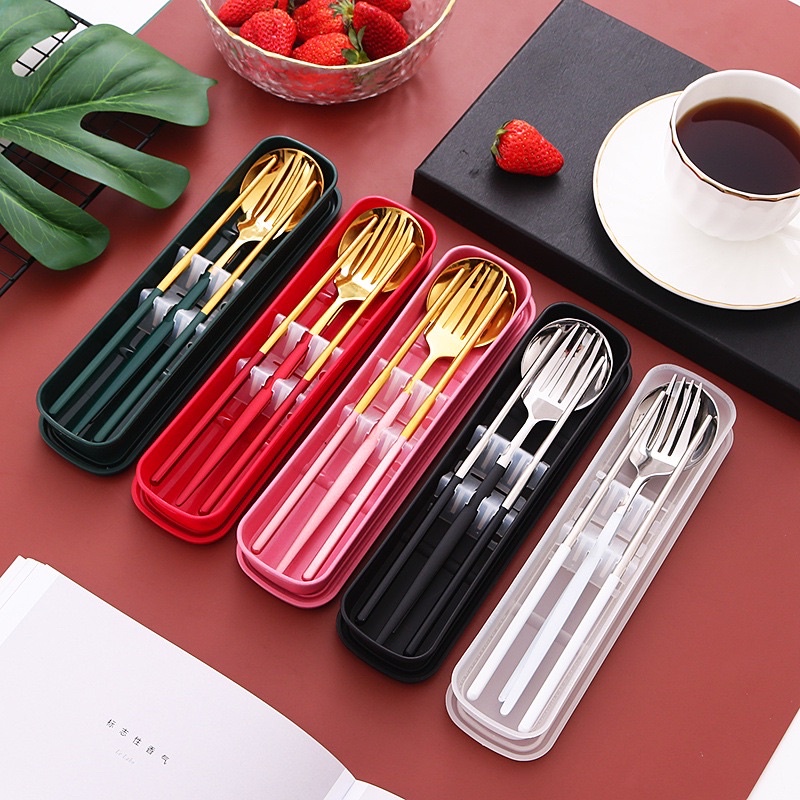 3in1 PORTABLE CUTLERY SET STAINLESS STEEL Utensil Spoon Fork Chopstick Set Travel EAT
