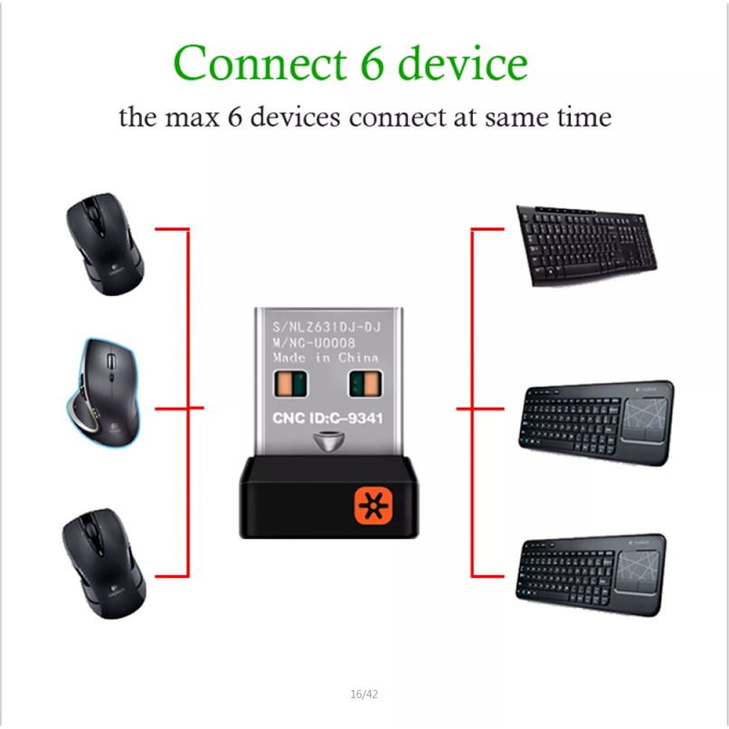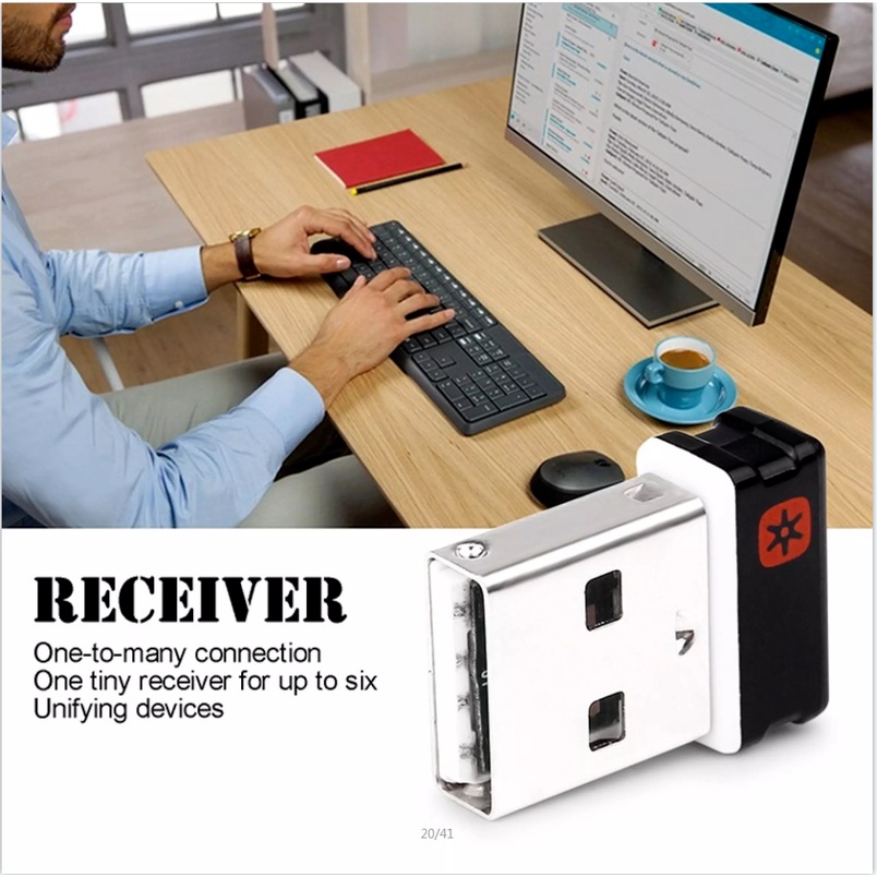3mm Logitech Wireless Dongle Receiver Unifying USB Adapter for Logitech Mouse Keyboard Connect 6 Device for MX M905 M950 M505 M510 M525 Etc (With Retail Box)