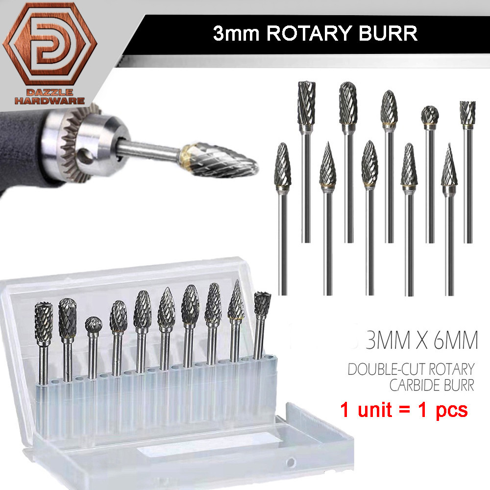 3mm shank rotary burr set tungsten carbide milling cutter rotary tool mata korek besi set rotary carbide burr