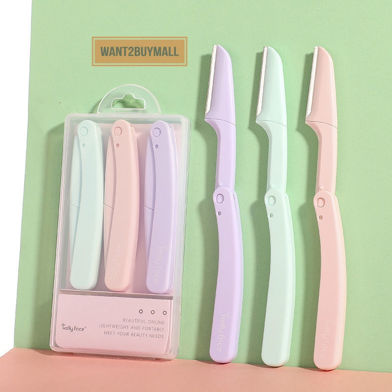 3pcs Eyebrow Epilator Folding Eyebrow Trimmer Safety Scraping Eyebrow Razor Beauty Dermaplaning Tool Eyebrow Scissors