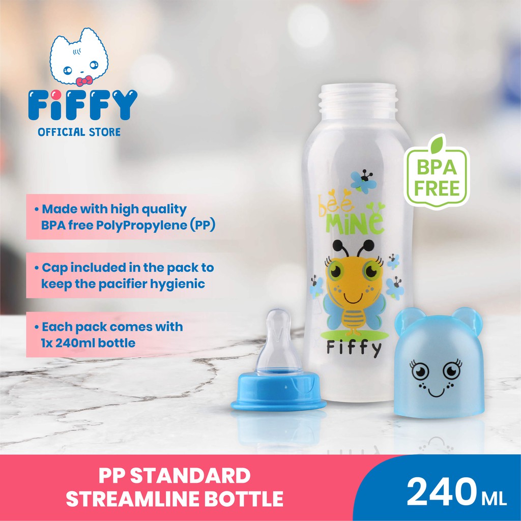 3pcs FIFFY PP STANDARD STREAMLINE BOTTLE 240ML 8oz ,botol susu fiffy free extra 1 teat