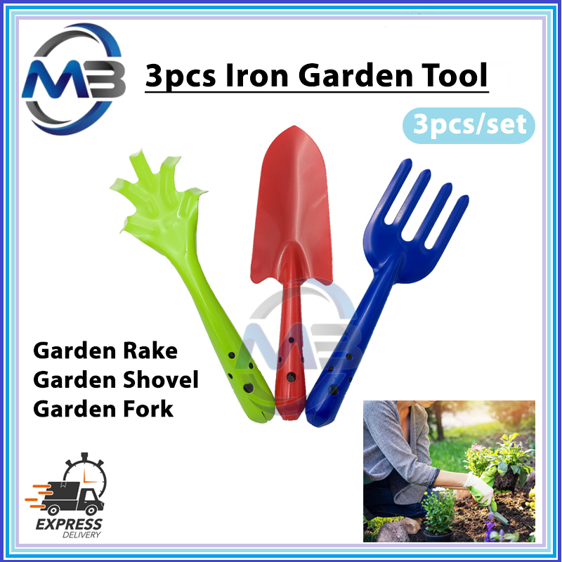 3pcs Metal Garden Tools Set SHOVEL-FORK-RAKE/ Alat Kebun Logam