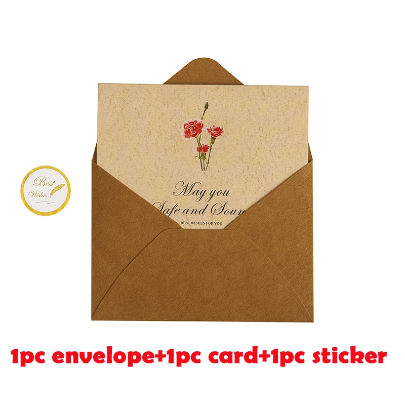 3pcs/set Vintage Envelopes with Greeting Cards Seal Sticker DIY New Year Christmas Gift Wrap Packaging Kraft Paper Postcard Wedding Invitation Cards Cover