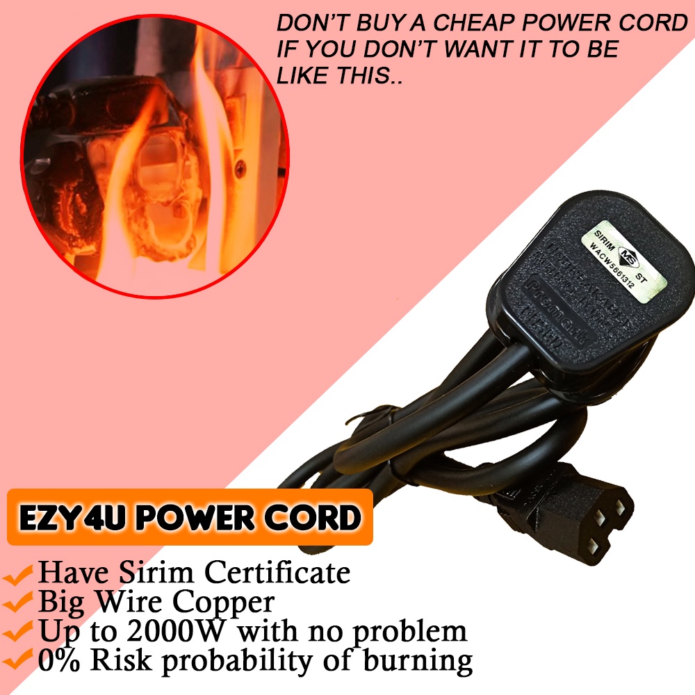 3pin Power Cord Cable 1.3M+- 13A Desktop PC LCD Monitor Laptop Printer Power Supply Cord Cable Wayar Periuk Nasi Kabel