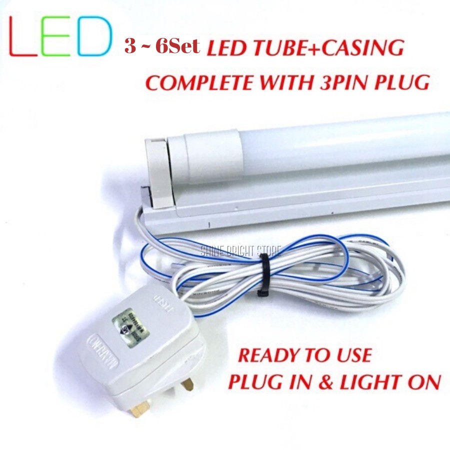 3~6SET x T8 LED Tube + Casing Complete Set with Plug / Led Tube set / Led Lampu