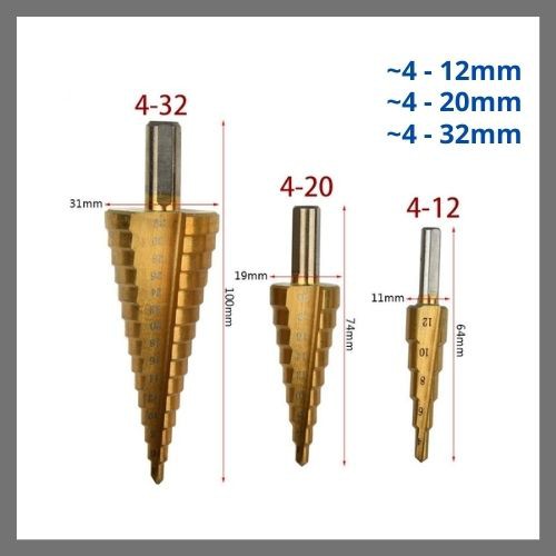 4-12/20/32mm Spiral Flute Shape Hole Cutter HSS Steel Step Cone Drill Bit Set