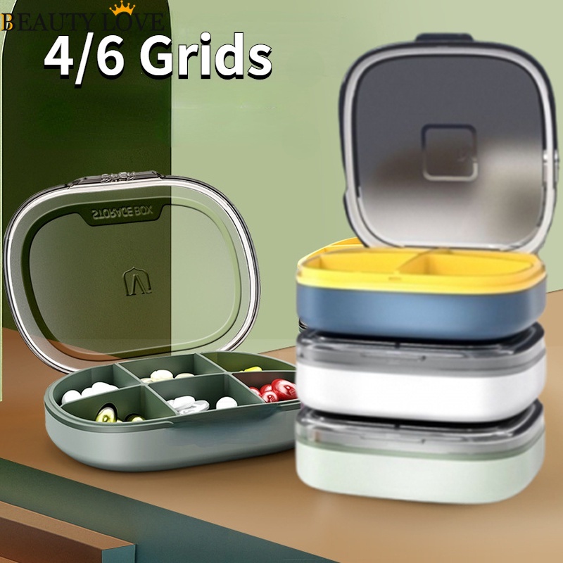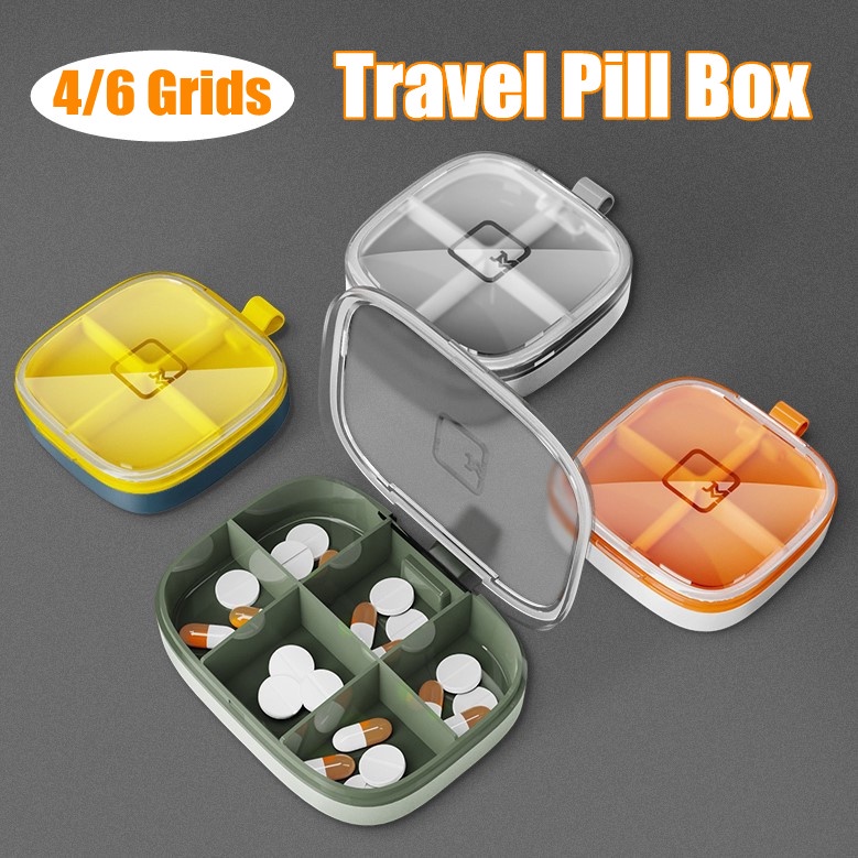 4/6 Grids Square Waterproof Vitamins Storage Case Portable Travel Pill organizer Pill Box Plastic Sealed Compartment Container Weekly Medicine Tablet Dispenser Weekly