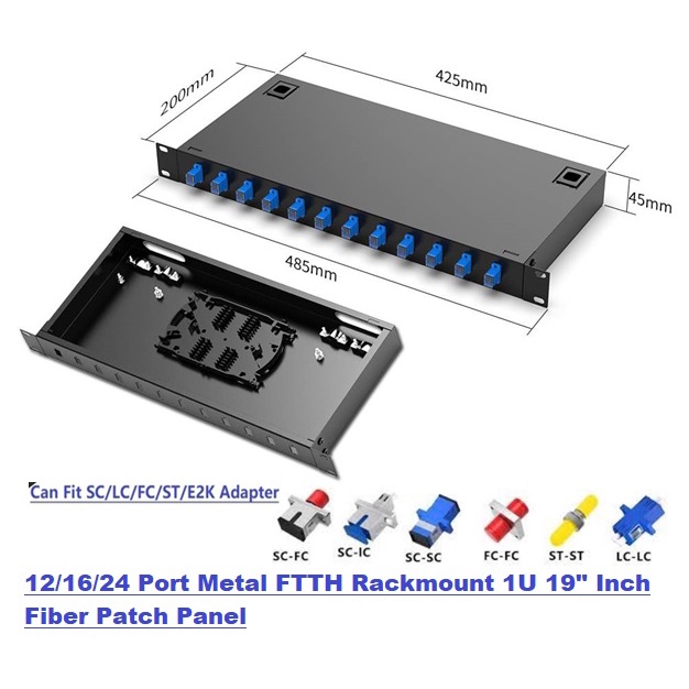 4/8/12/24 Port Metal FTTH Wallmount Termination Box Rackmount Patch Panel / Distribution Enclosure Box / Liu Box