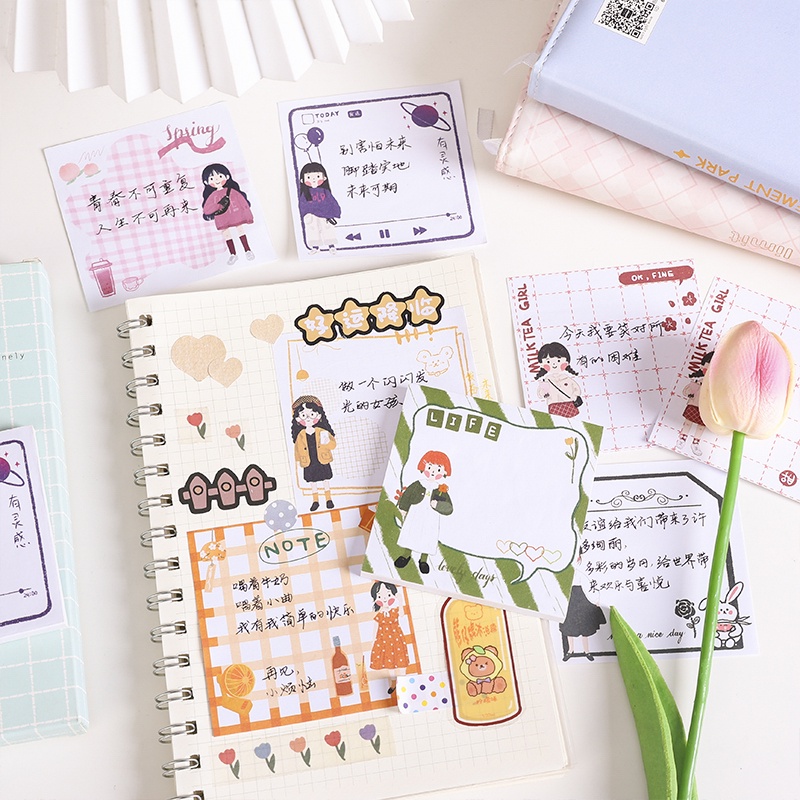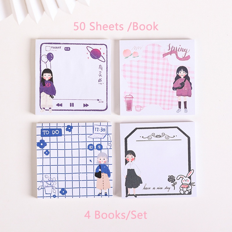4 Books Lovely JK Girl Series Sticky Notes Student Tearable Mini Note Paper Set