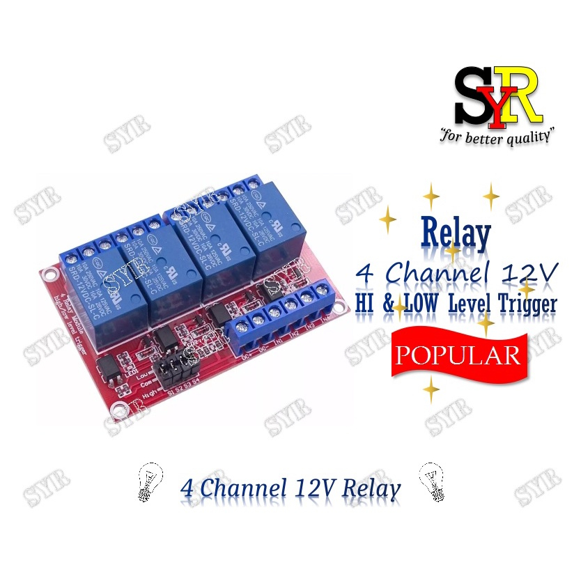 4 Channels 12V Relay Module Hi & Low Level Trigger with Optocoupler mdl (PR2002F)