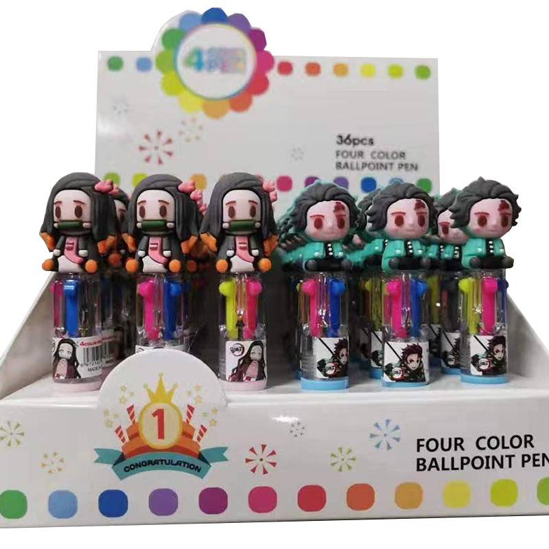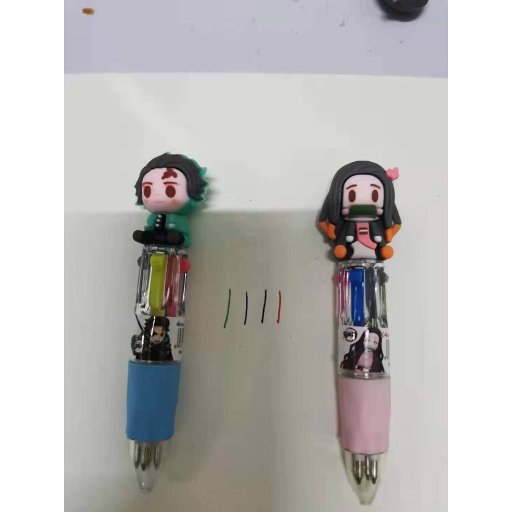 4 Colors Demon Slayer Kimetsu No Yaiba Cute Anime Cartoon Ballpoint Pen School Office Supply Stationery Multicolored Pens Colorful Refill kids gift Kamado Tanjirou Kamado Nezuko