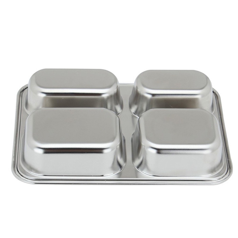 4 Compartments Lunch Box Stainless Steel Food Containers Tray With Lid Lunch Box Snack Tray Thick Snack Box