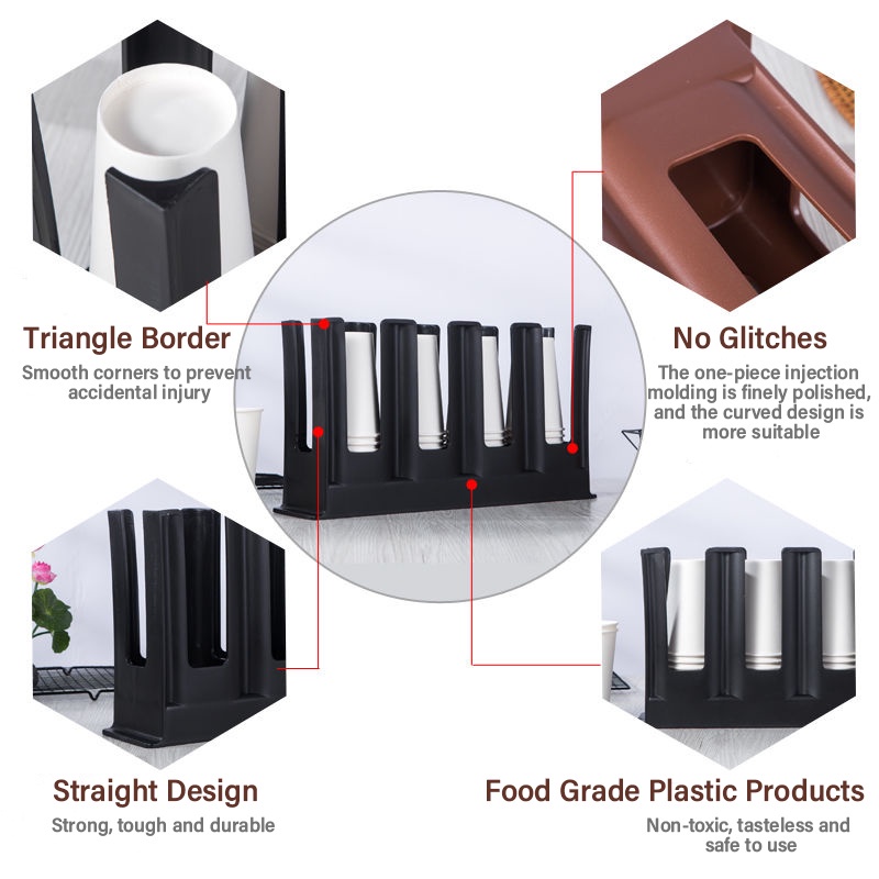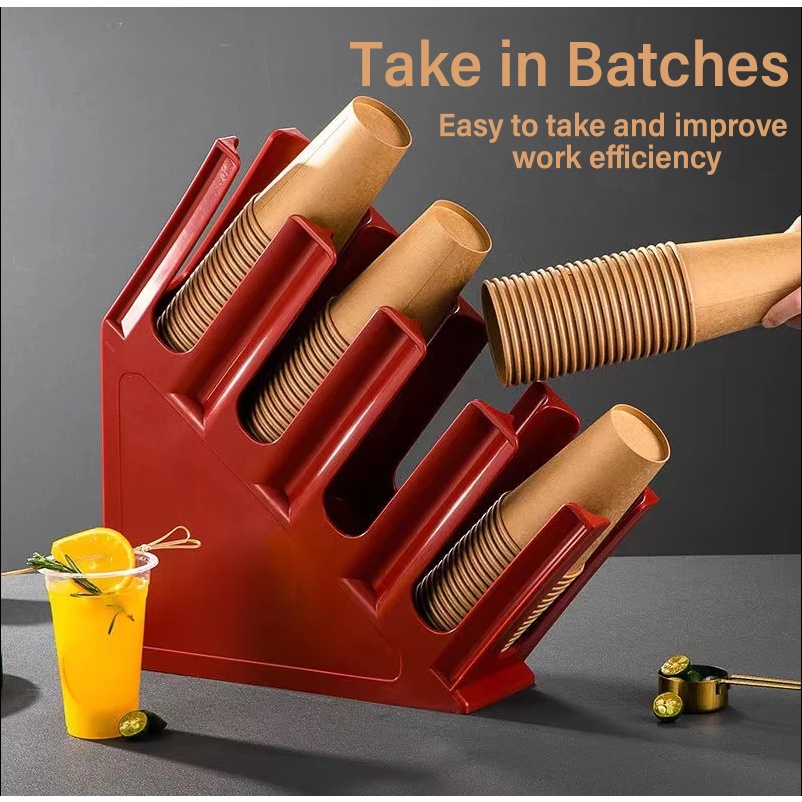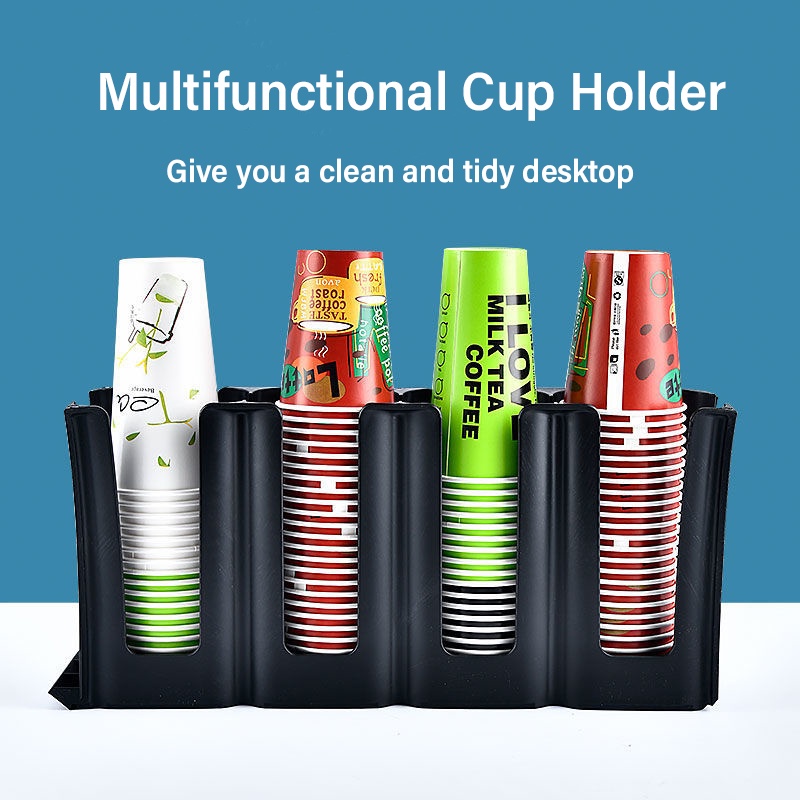 4 Compartments Plastic Cup Holder Full Size Counter Top Organizer Cup Dispenser Organizer Storage Lid Holder Rak Cawan