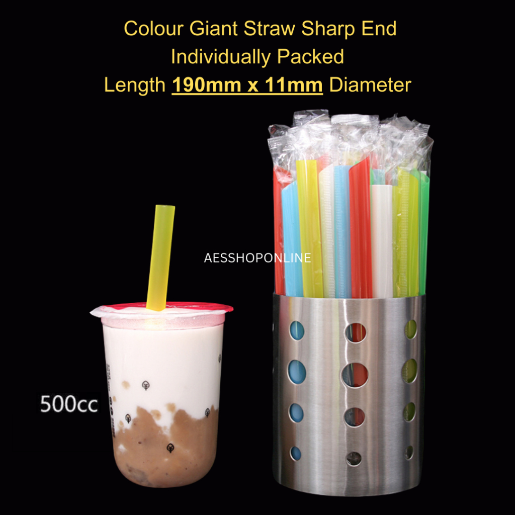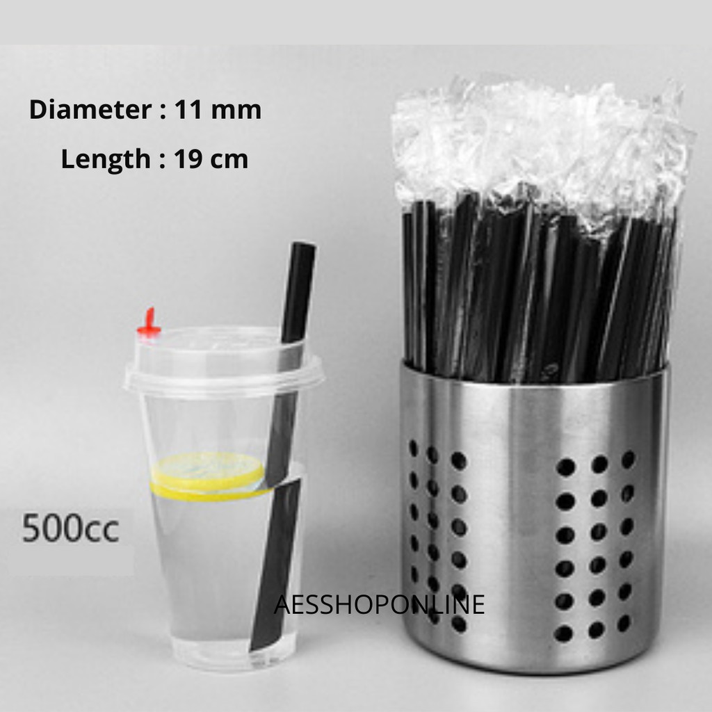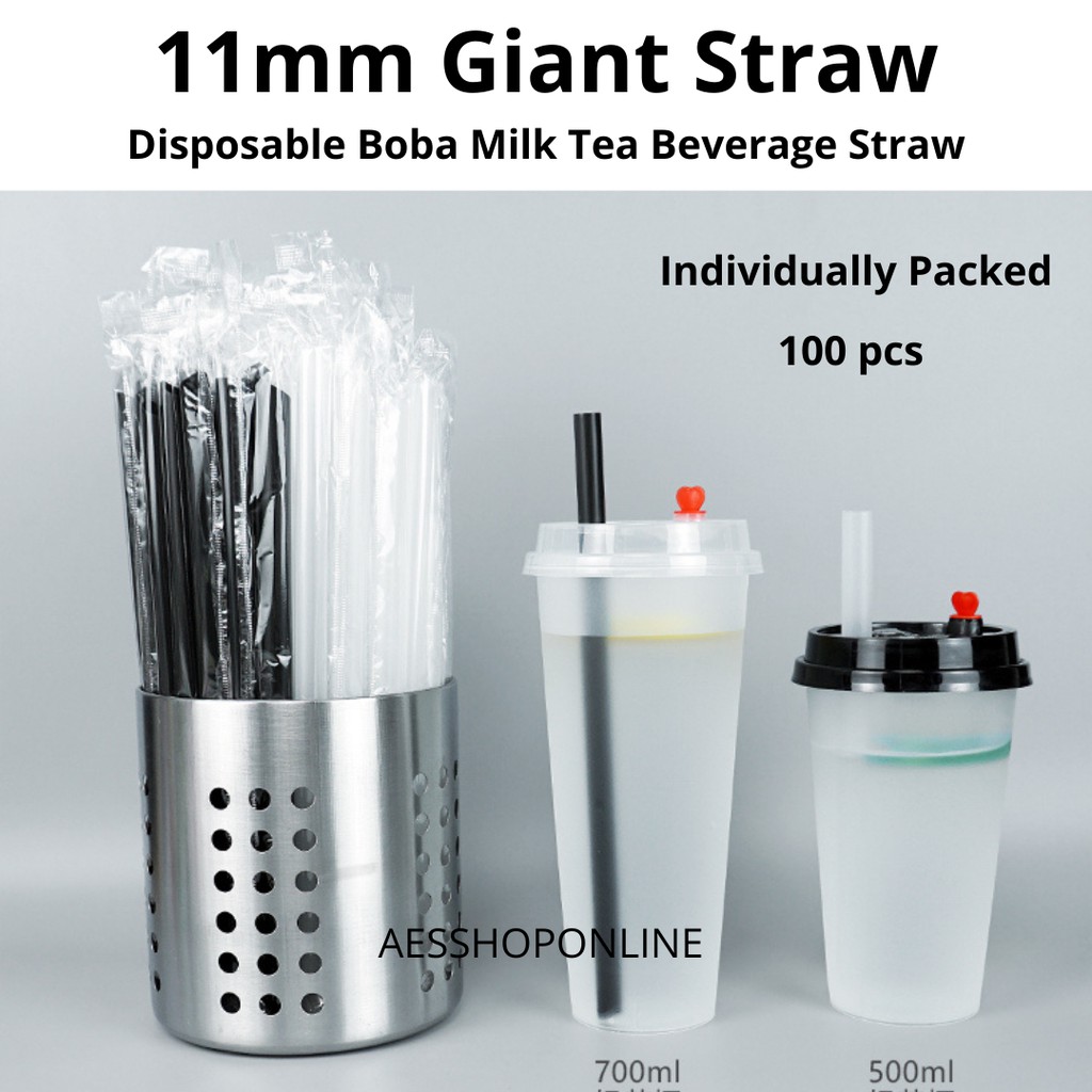 11mm Black Transparent Giant Pointed Straw 100pcs± Individual Pack Disposable Plastic Sharp End Boba Bubble Milk Tea