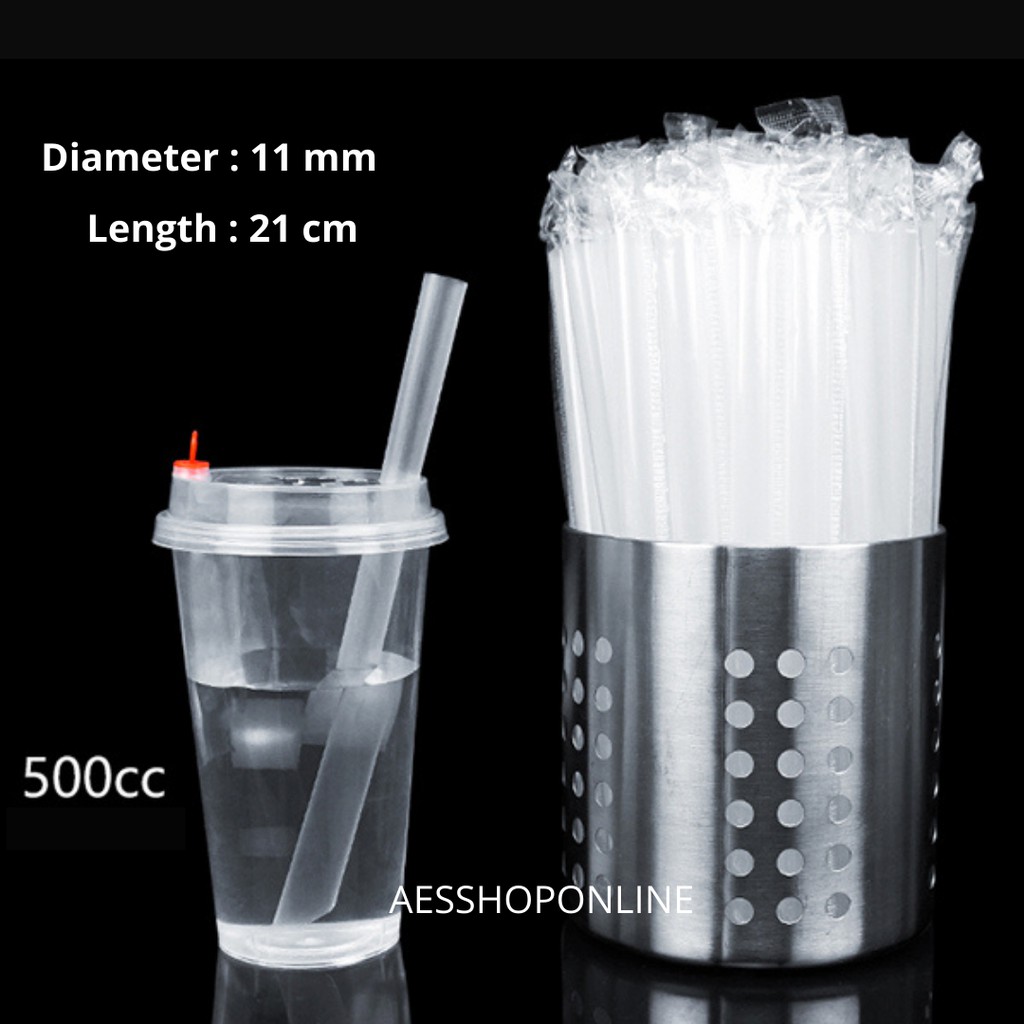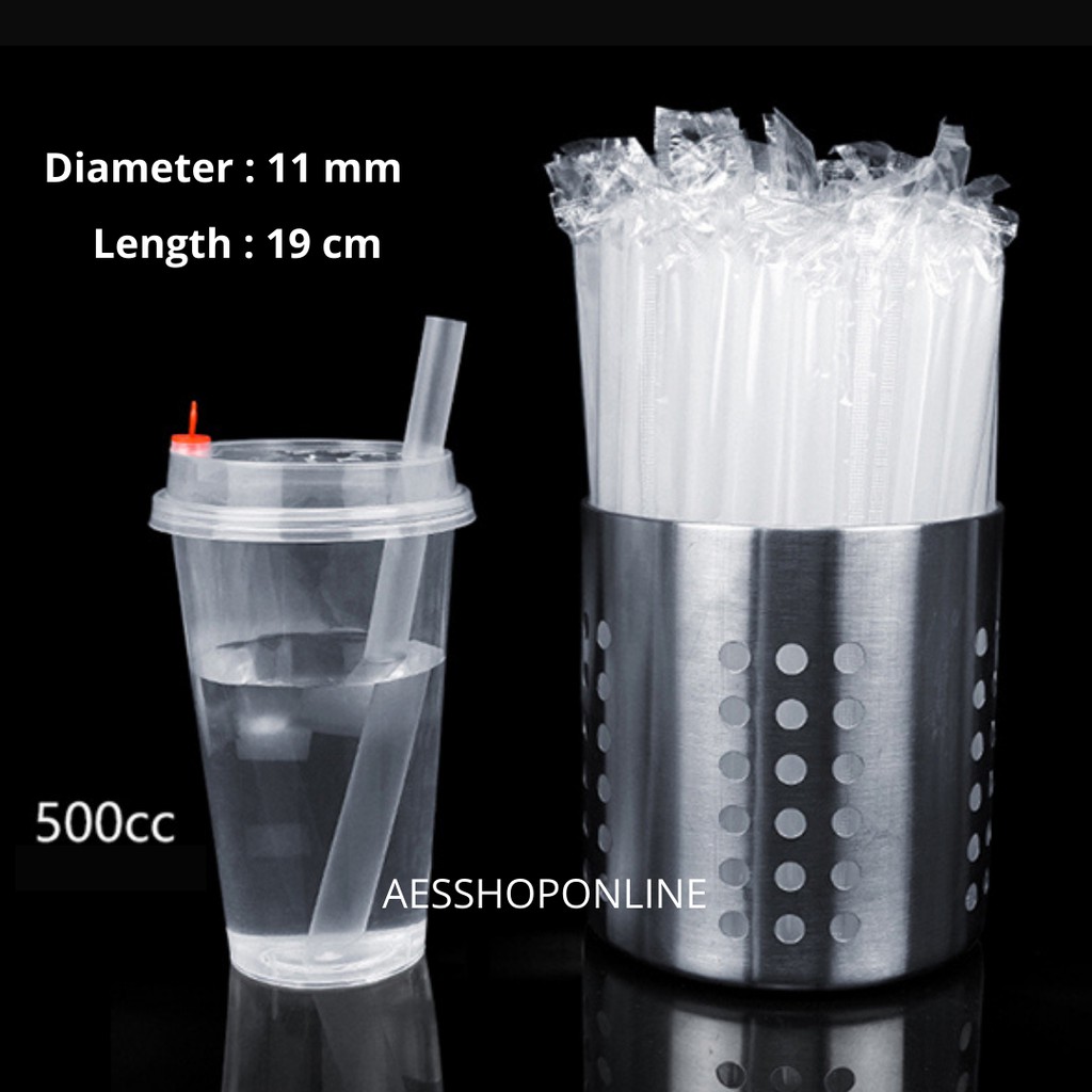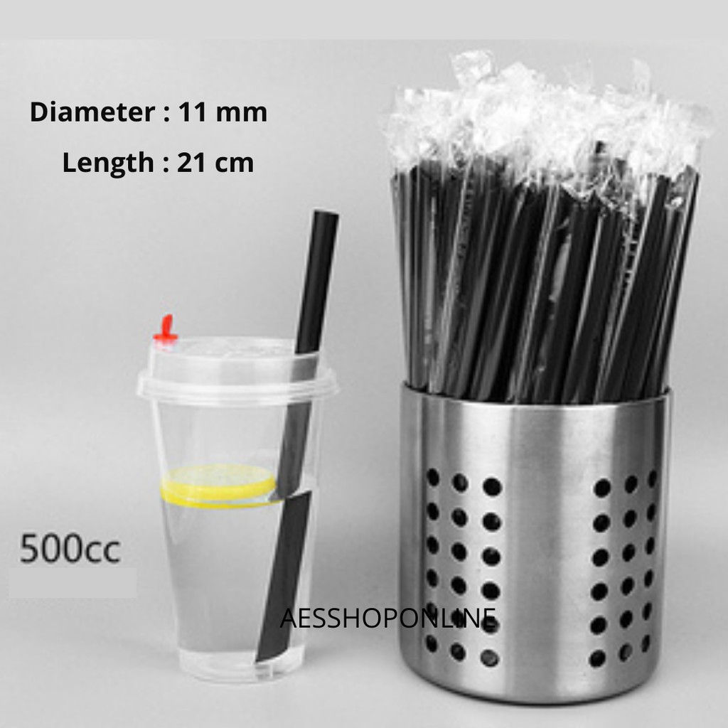 11mm Black Transparent Giant Pointed Straw 100pcs± Individual Pack Disposable Plastic Sharp End Boba Bubble Milk Tea