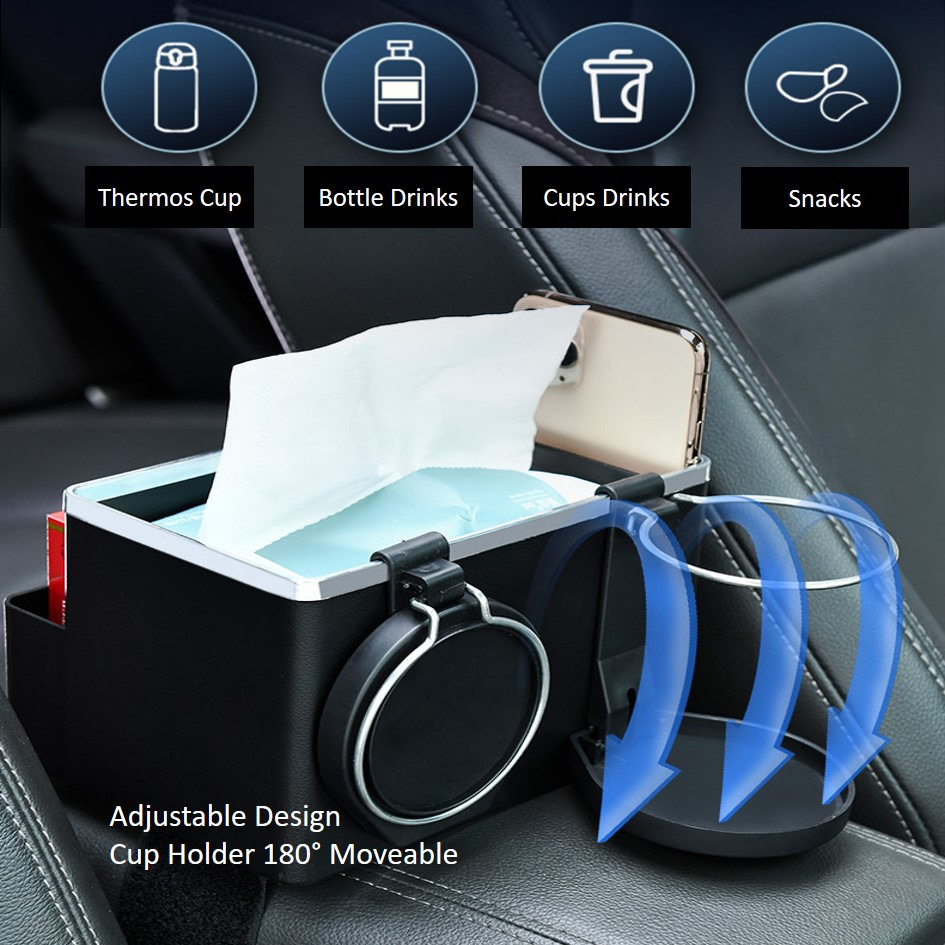 4 IN 1 Multifunctional Car Armrest Storage Tissue Box Cup Drinks Phone Holder Bag Foldable Vehicle Compartment