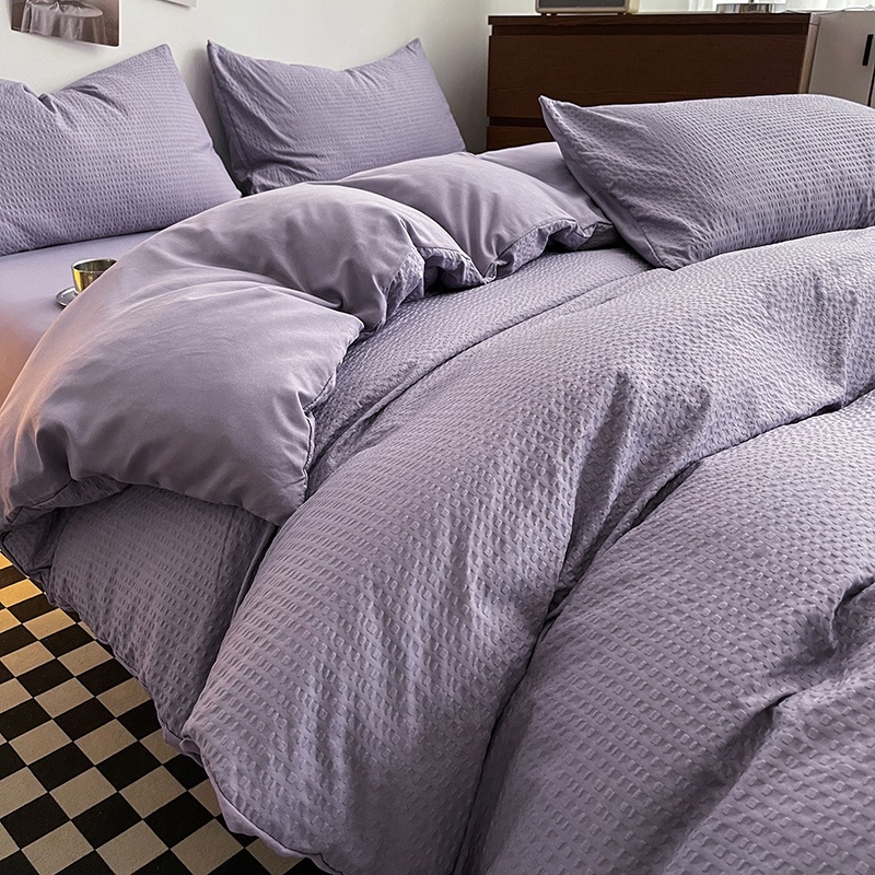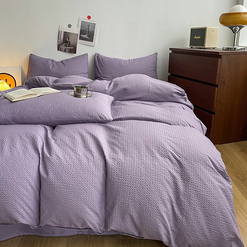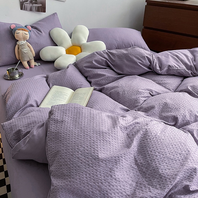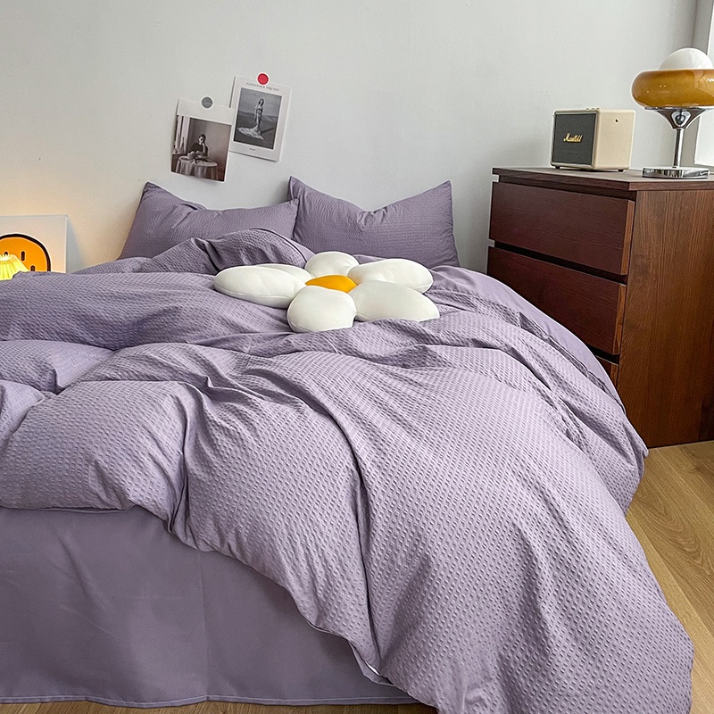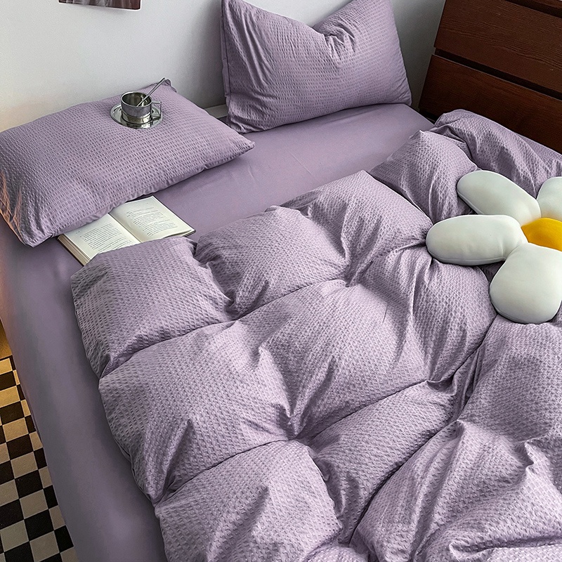 4 IN 1 Washed Cotton Plain Bedding set Comforter Cover Flat Sheet/Fitted Sheet Pillow Cover Single/Queen/King Size Bed Sheet Sets