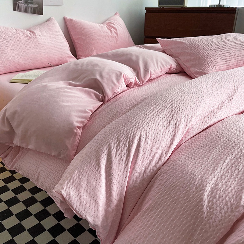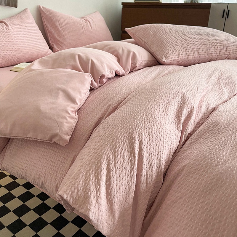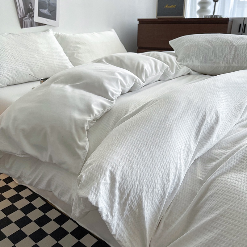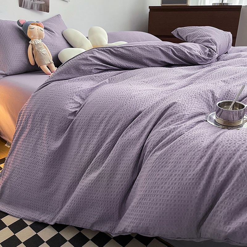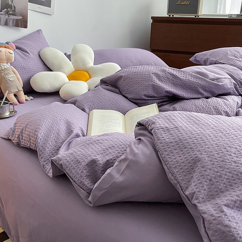 4 IN 1 Washed Cotton Plain Bedding set Comforter Cover Flat Sheet/Fitted Sheet Pillow Cover Single/Queen/King Size Bed Sheet Sets