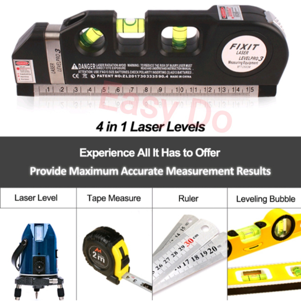 4 In 1 Multipurpose Laser Level Meter Spirit Level Measuring Tape High Precision Tape Rulers Adjustable Laser Leveller