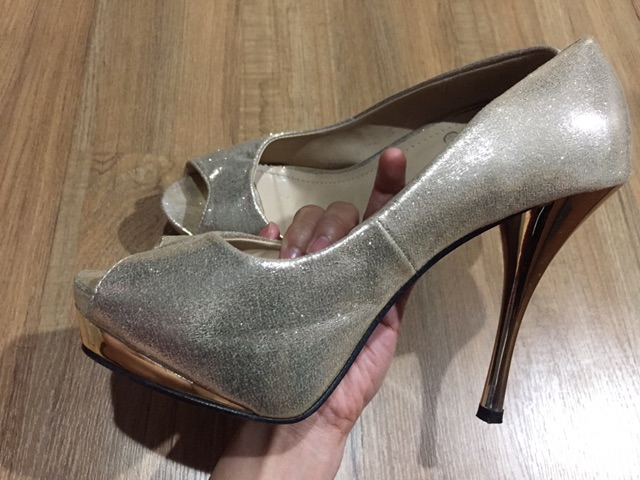 4-Inch High Heels Very Luxurious Gold Glitter Design