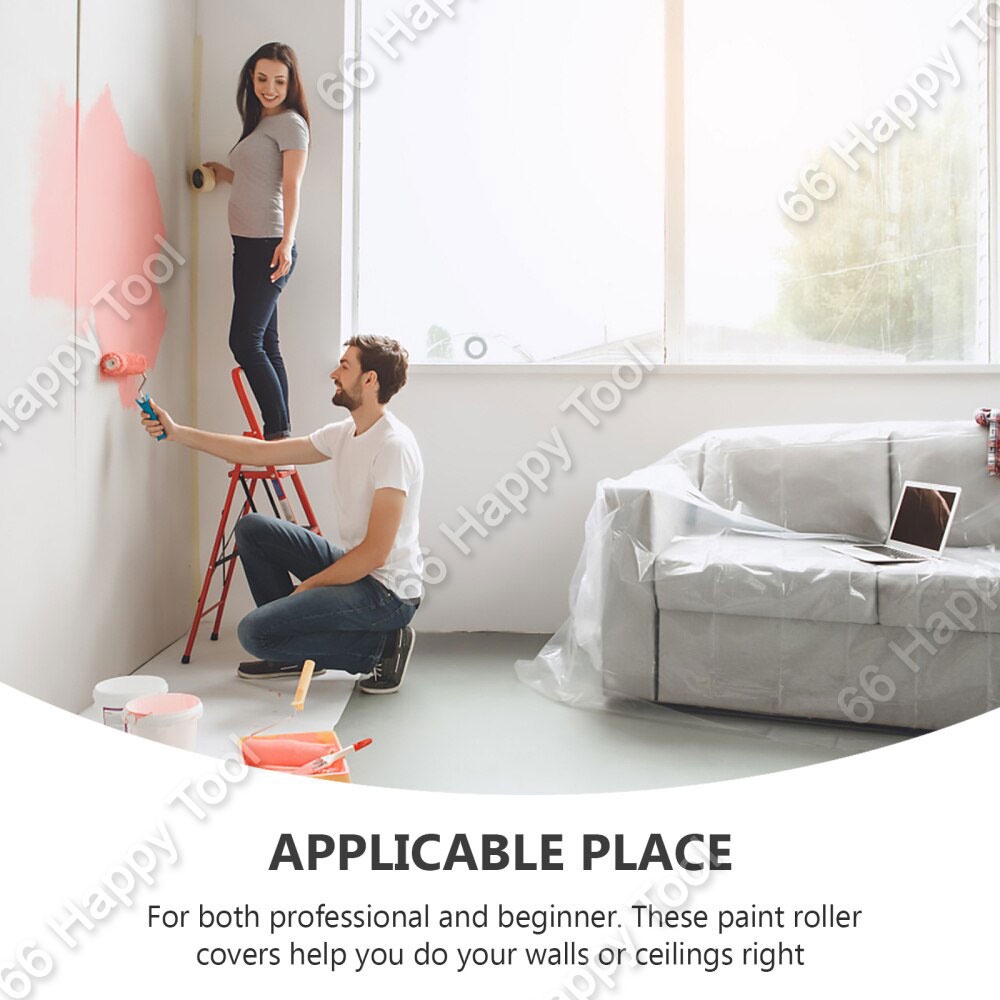 4 Inch Paint Roller Refill 100mm White with Yellow Line Roller Paint Cat Minyak Water Base Arcylic Epoxy