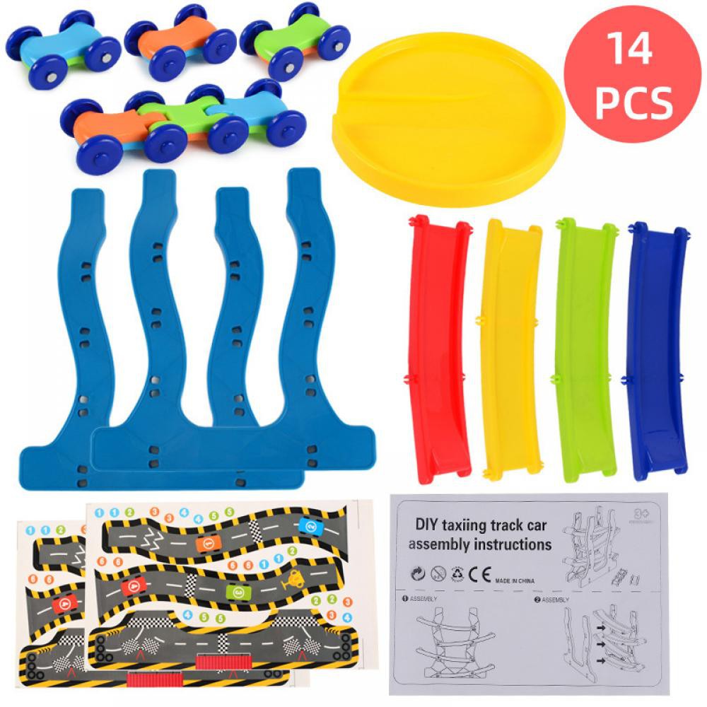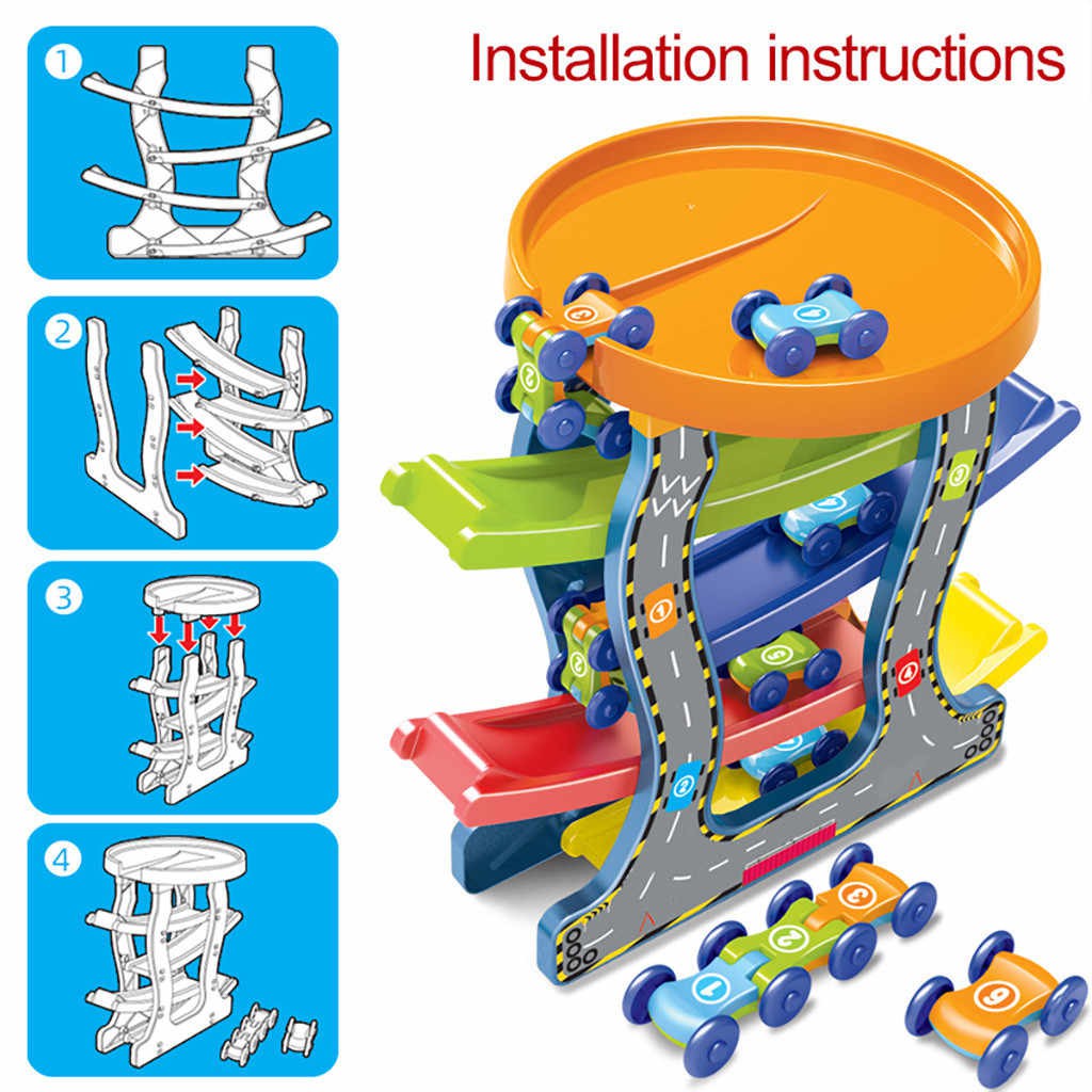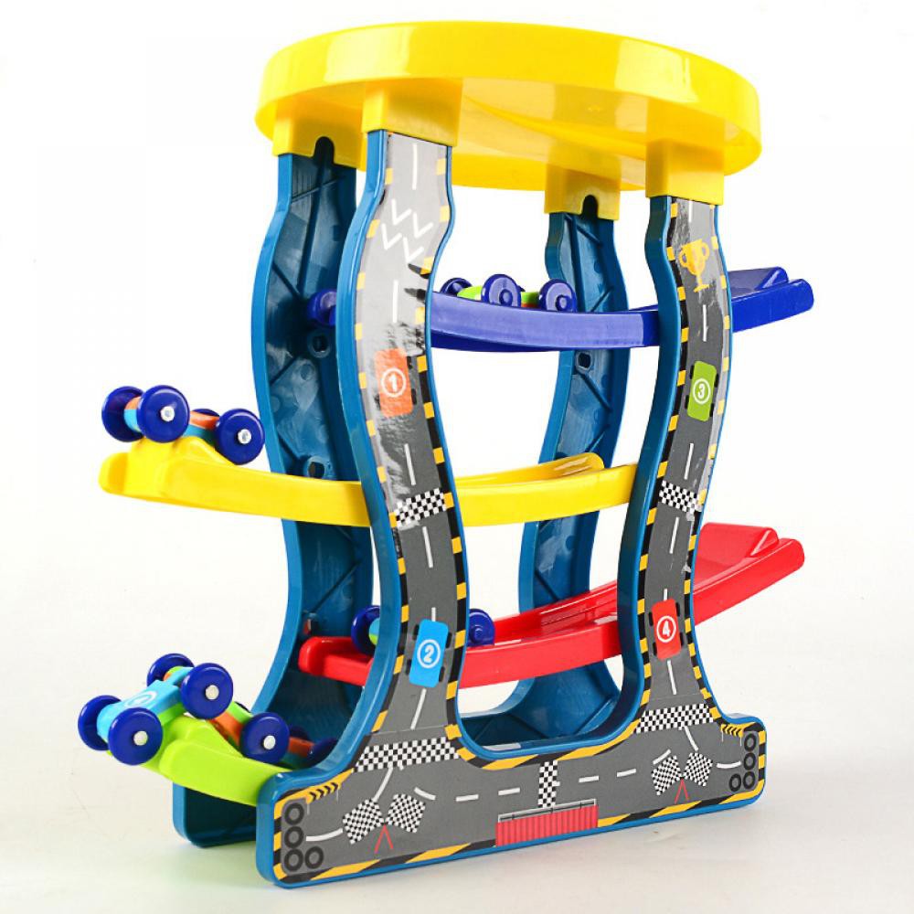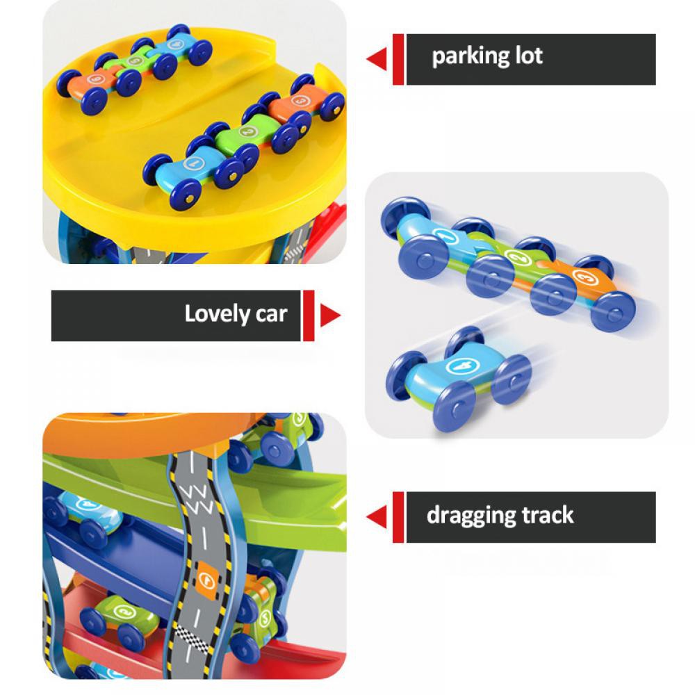 4 Layer Slide Racing Cars Toys Gliding Car with Car Park Ladder Track Car 4 Level Sliding Track Game Ramp Race Track