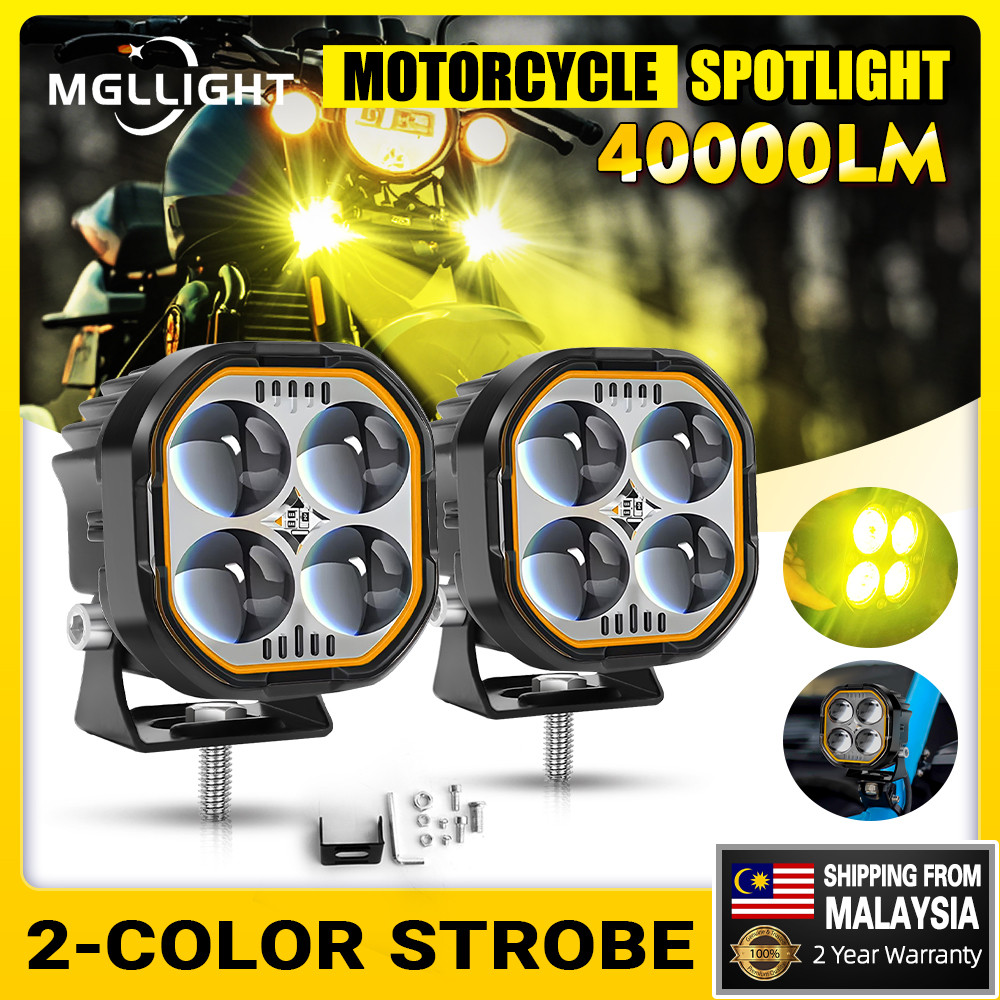 4 Lens LED Motorcycle Spotlight 2 Inch Work Light With 3000K Amber Auxiliary Light for Offroad 4x4 Tractor Pickup 12V 24V