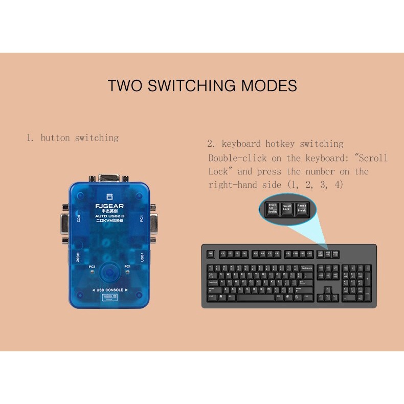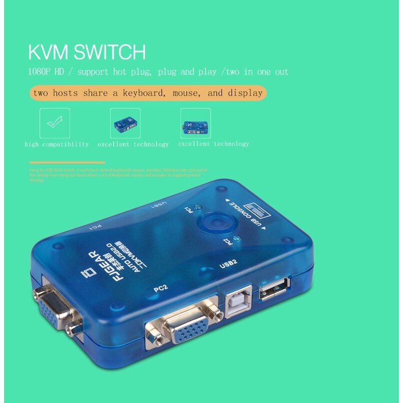 4 PORTS USB KVM AUTO SWITCH SELECTOR TWO IN ONE OUT VGA HOTKEY SWITCH 4 HOSTS SHARE A SET OF MOUSE AND KEYBOARD DISPLAY