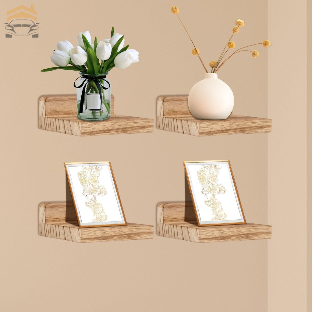 4 Pcs Wood Floating Shelves Wall Mounted Small Wall Shelves Decorative Floating Wall Shelves for Bedroom 12.5x12.5x5cm SHOPCYC3342