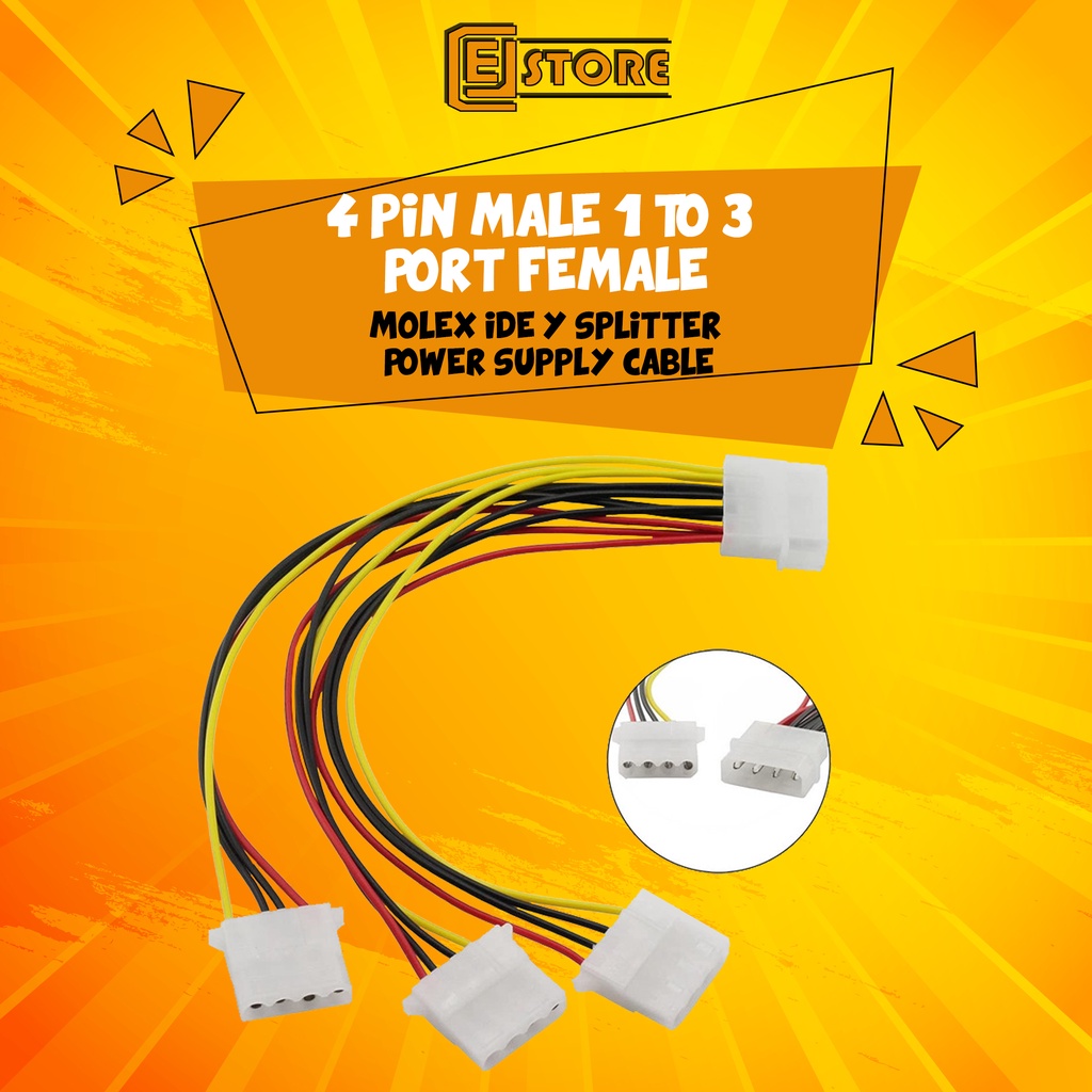 4 Pin Male 1 to 3 Female Molex IDE Y Splitter Power Supply Cable