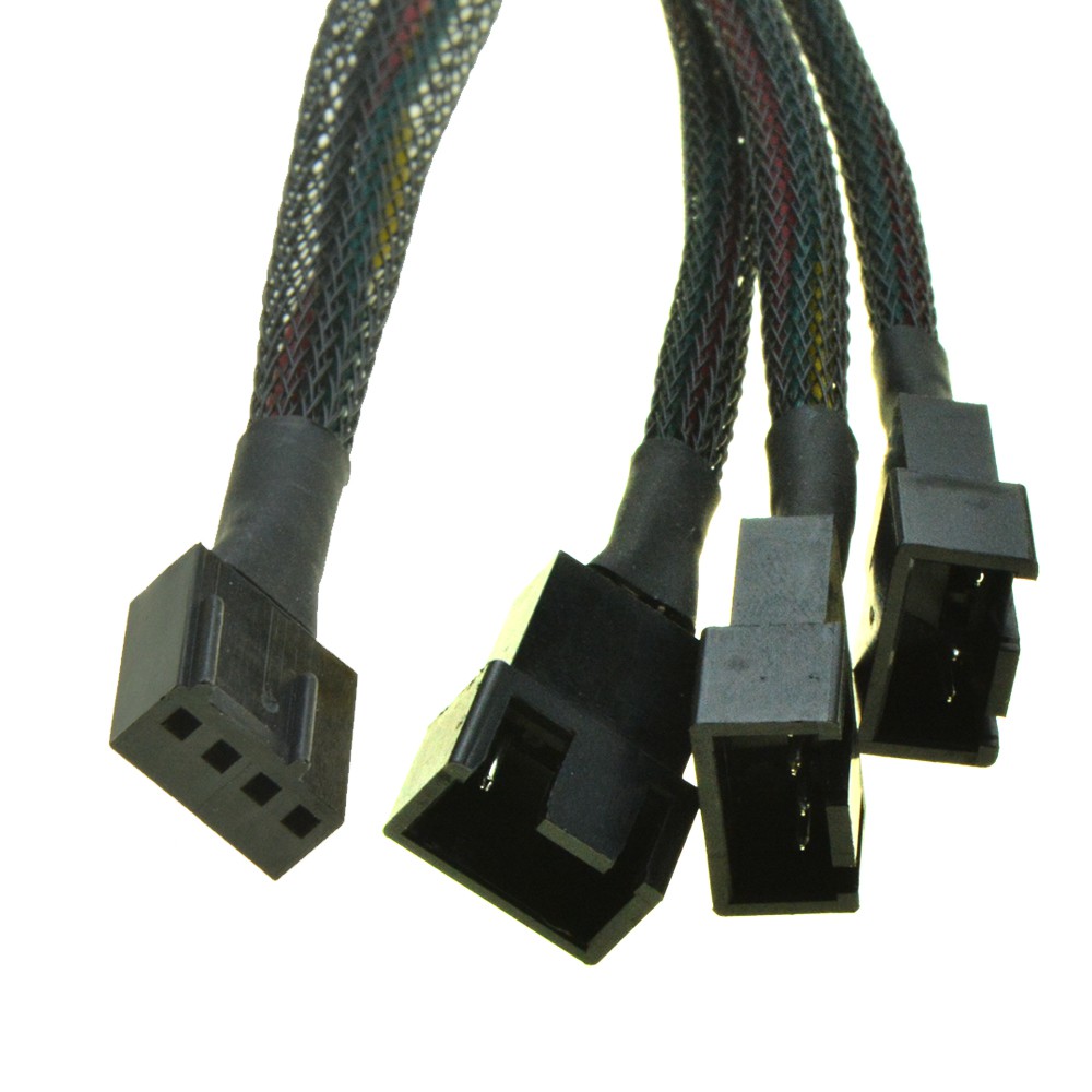 4 Pin PWM Fan Cable 1 To 3 Ways 4PIN Splitter Black Sleeved Extension Cable