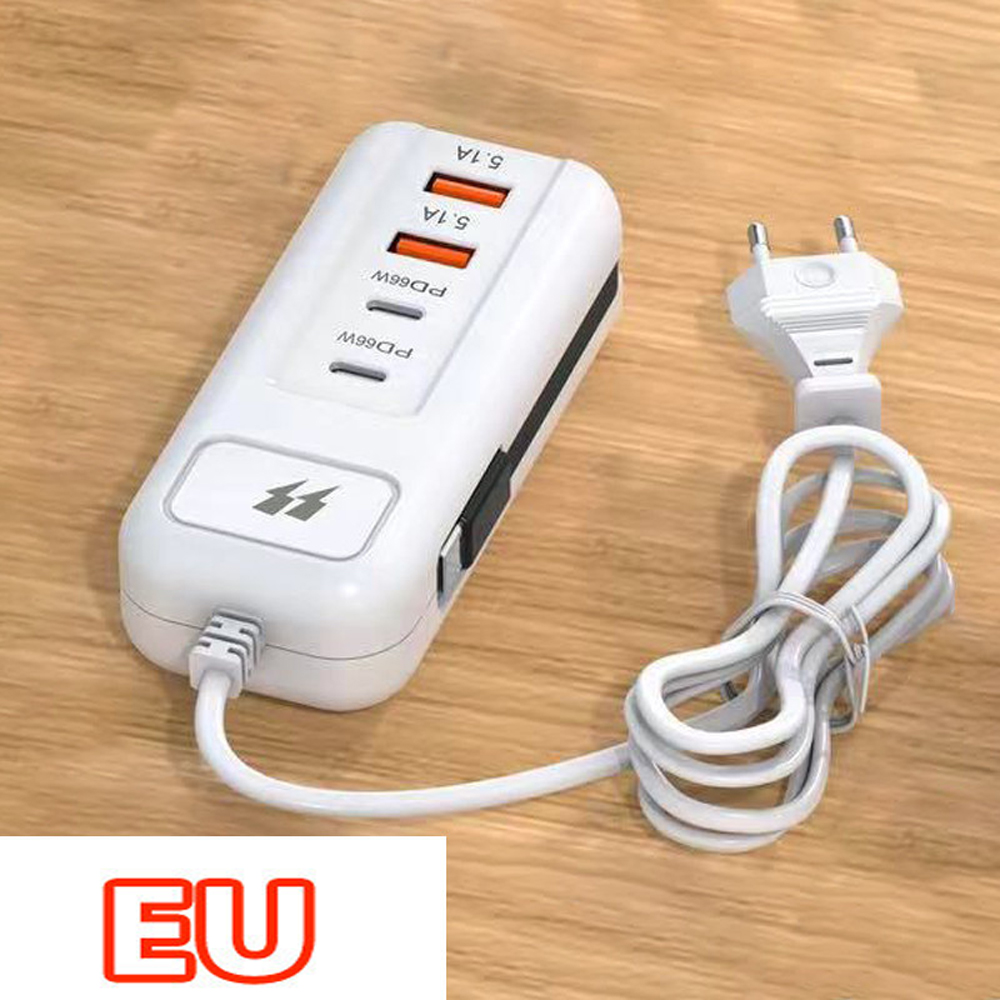4 Port USB Charger with Type-c Socket Extension Cable Multi-port Dual PD Fast Charging Head Fast Charging Wall Charger for Mobile Phone Travel Power Adapter