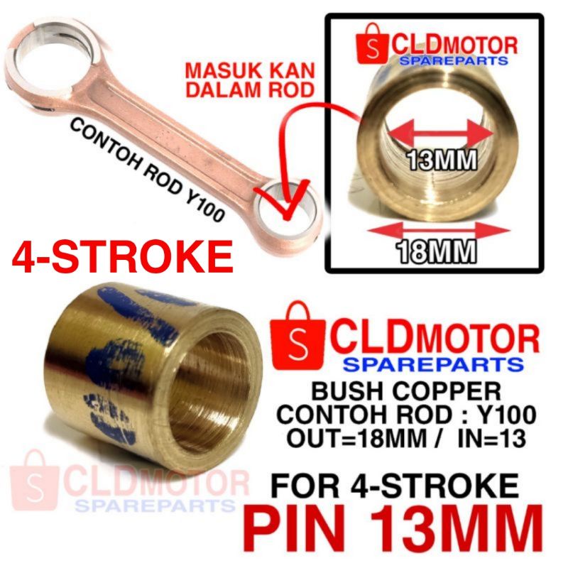 4 STROKE ONLY - BUSH COPPER FOR PISTON PIN 13MM PIN 14MM CUSTOM UNTUK PAKAI ROD RXZ Y125Z & Y100 EX5 W125