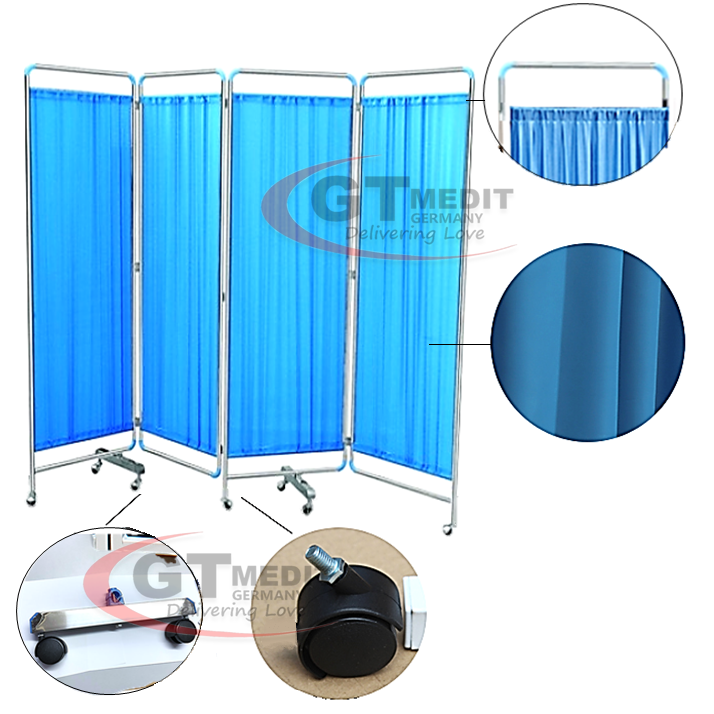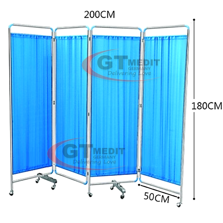 4 Section Stainless Steel Ward Screen Curtain Movable Foldable Hospital Bed Panels