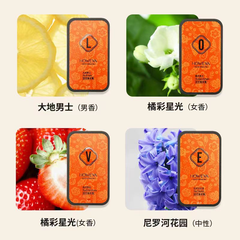 4 Sets Classy Luxurious AIMASHI CHENG Dried Solid Balm Portable Lasting Perfume for Men and Women Luxurious Wax Perfume