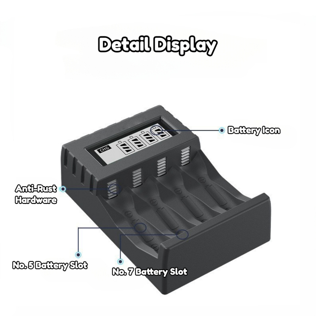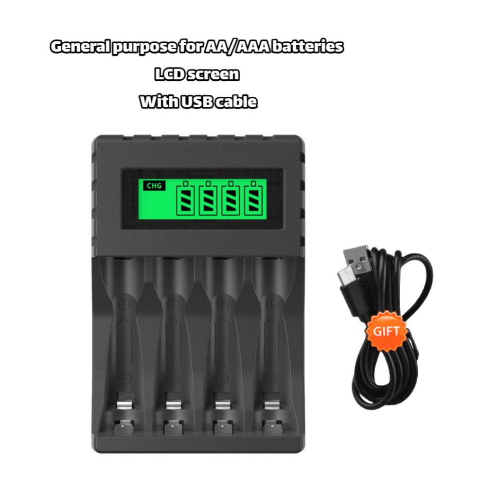 4 Slots LCD Smart AA Battery Charger for 1.5V AA Lithium Li-ion Rechargeable Battery 2A Fast Battery Charger