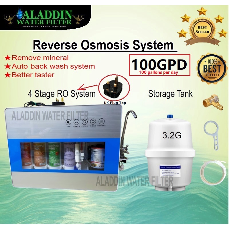 4 Stage RO Water Filtration System (100 GPD Reverse Osmosis System) For Drinking water