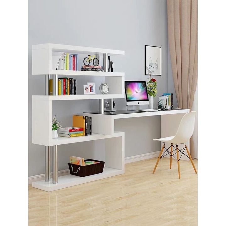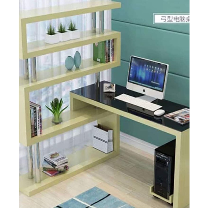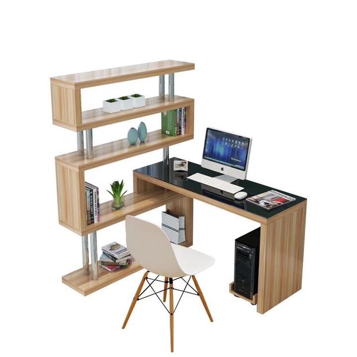 4 Tier L-Shape Rotating Corner Home Office Computer Laptop PC Gaming Study Desk Table with Shelves