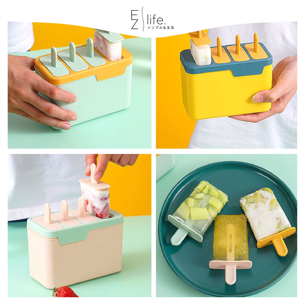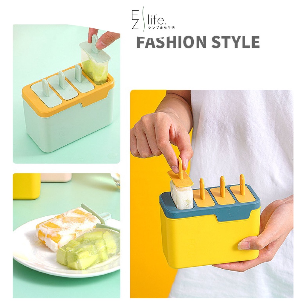 EzLife[CLEARANCE] 4in1 Ice Cream Mould Sorbet Popsicle Maker Silicone Double Layer Bekas Membuat Aiskrim Potong自制冰棒雪糕模具