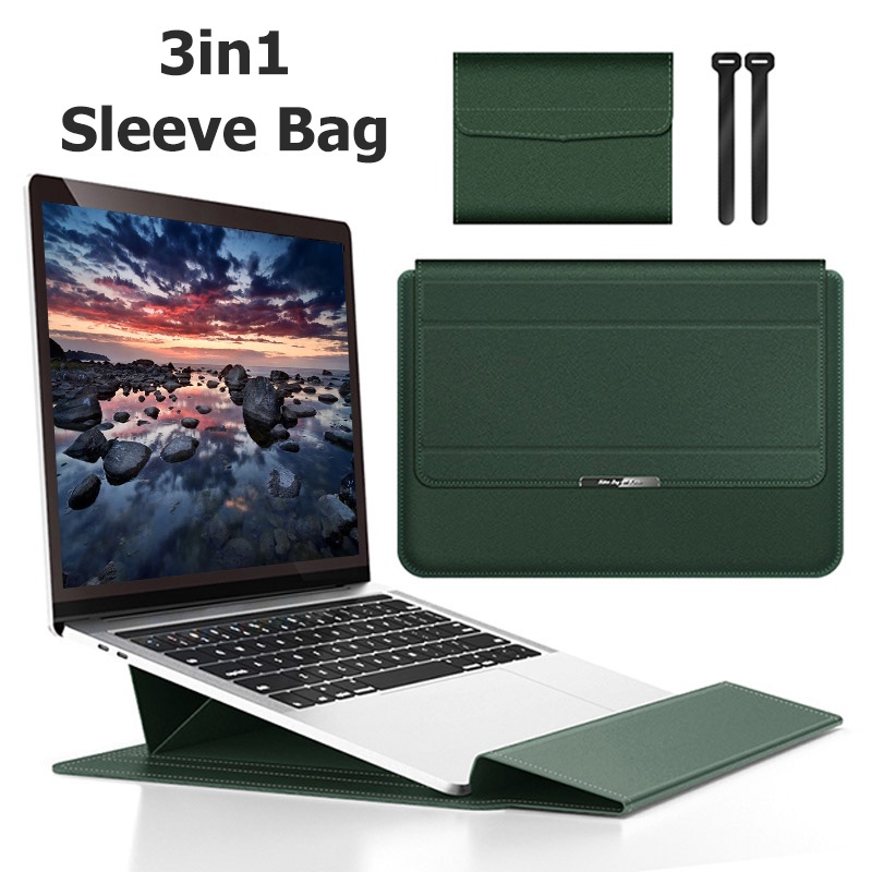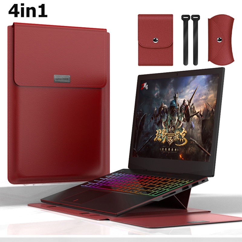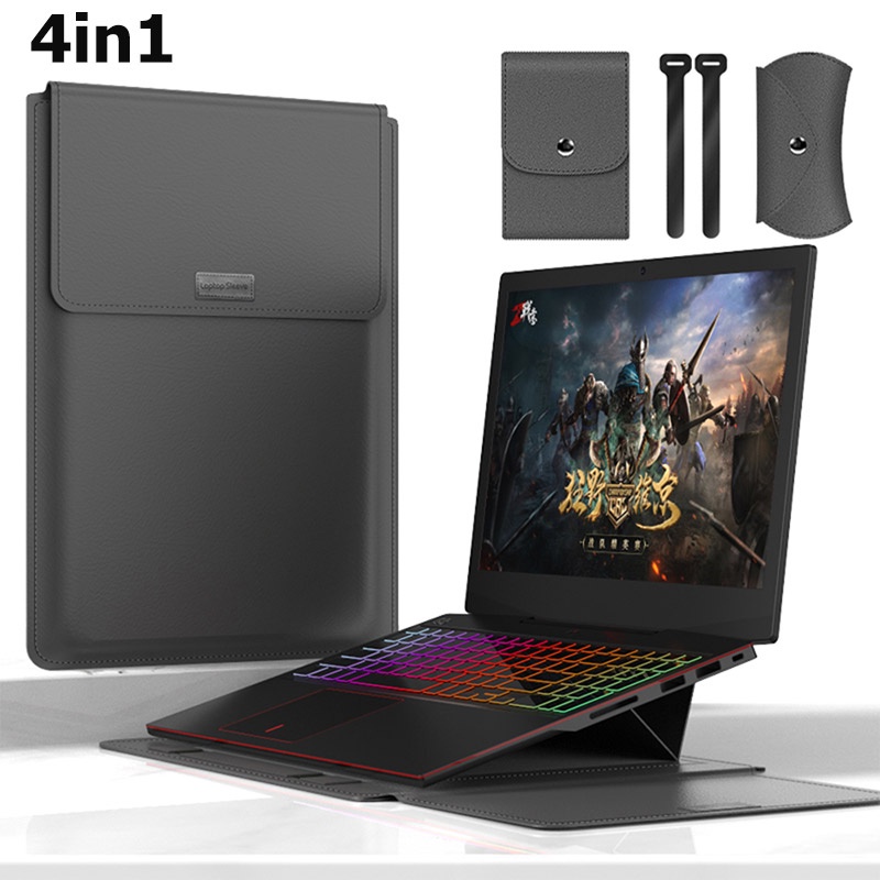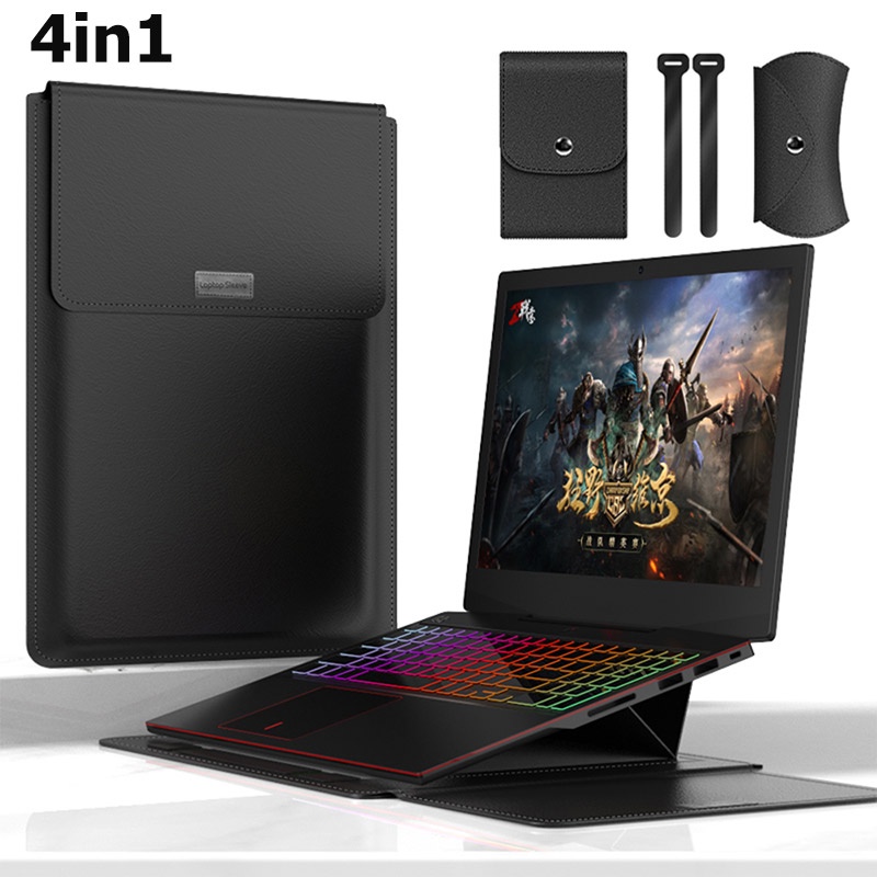 4 in 1 Notebook Laptop stand sleeve 11 12 13 14 15 16 inch Bag Soft PU Leather Pouch Liner Hand carry Bag for Macbook pro air 13 inch