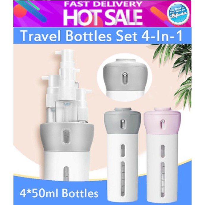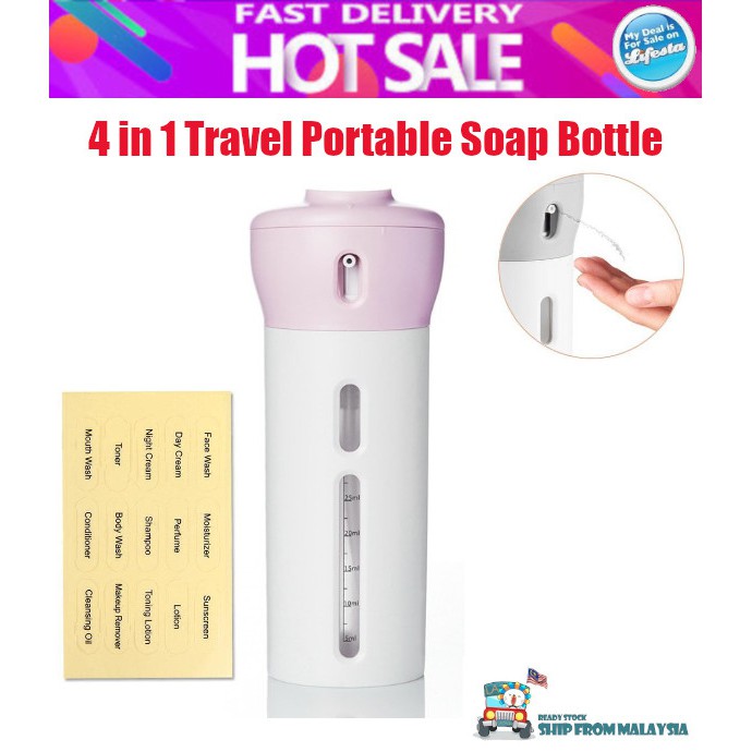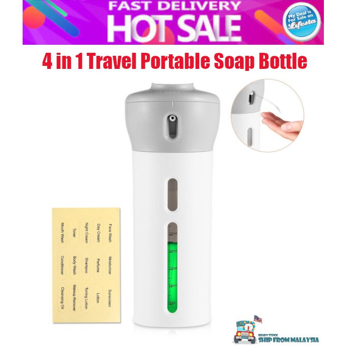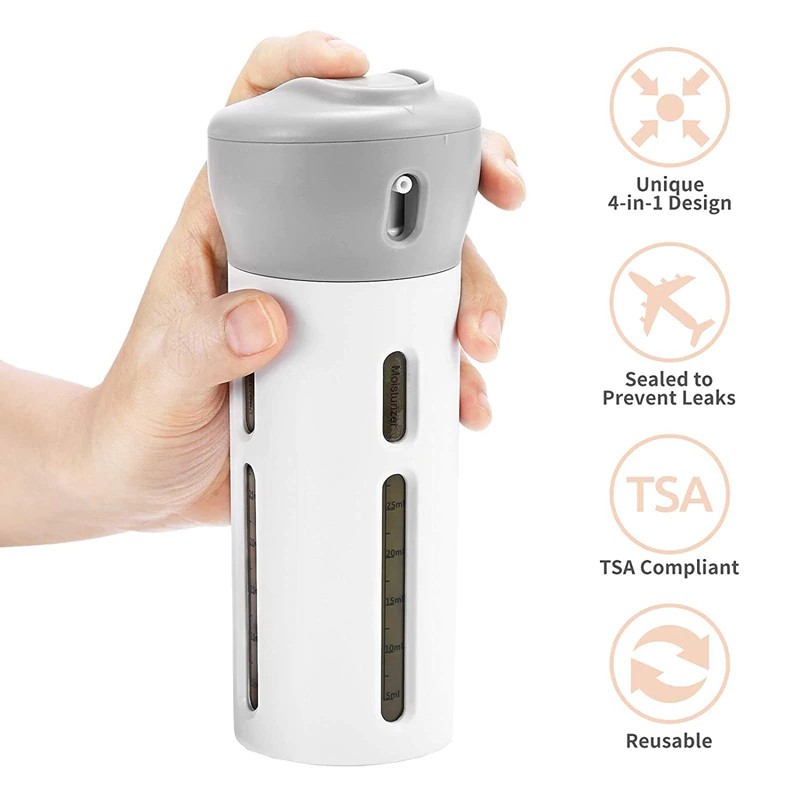 4 in 1 Soap Portable Lightweight Dispenser Bottle Travel Shampoo Shower Gel Makeup Storage Container With Inner Bottles