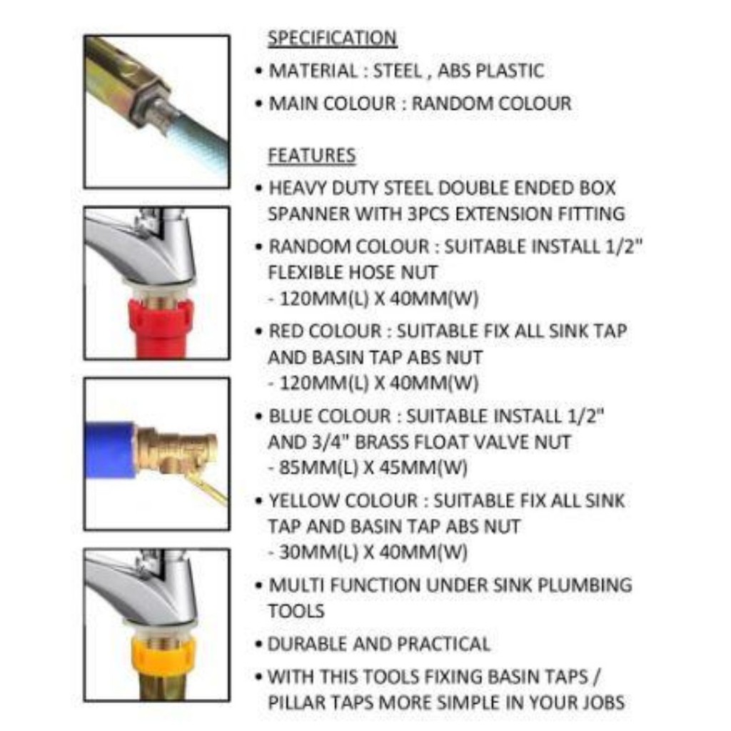 4 in 1 Tubular Basin Socket Wrench Set / Basin Socket Wrench