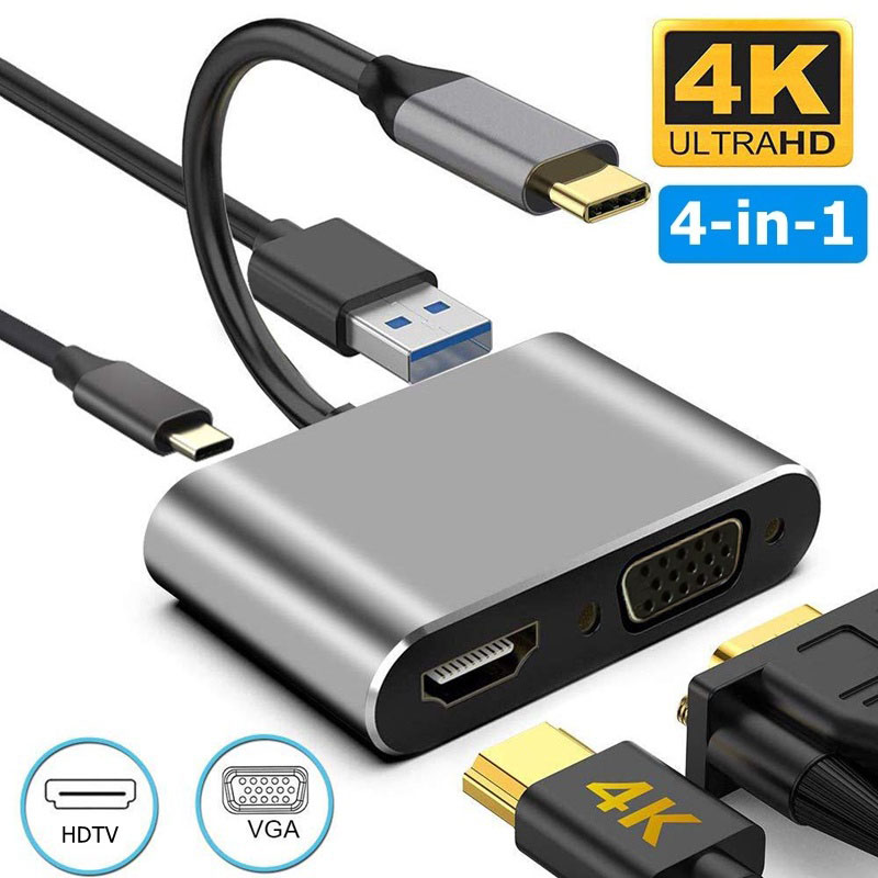 4 in 1 Type C To 4K HDMI HDTV 1080P VGA USB 3.0 Female Converter Cable Adapter For Windows