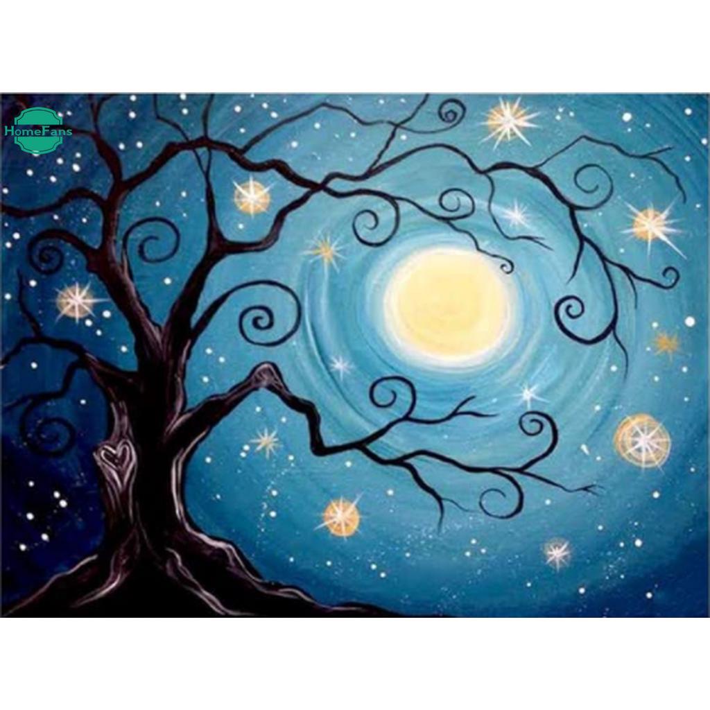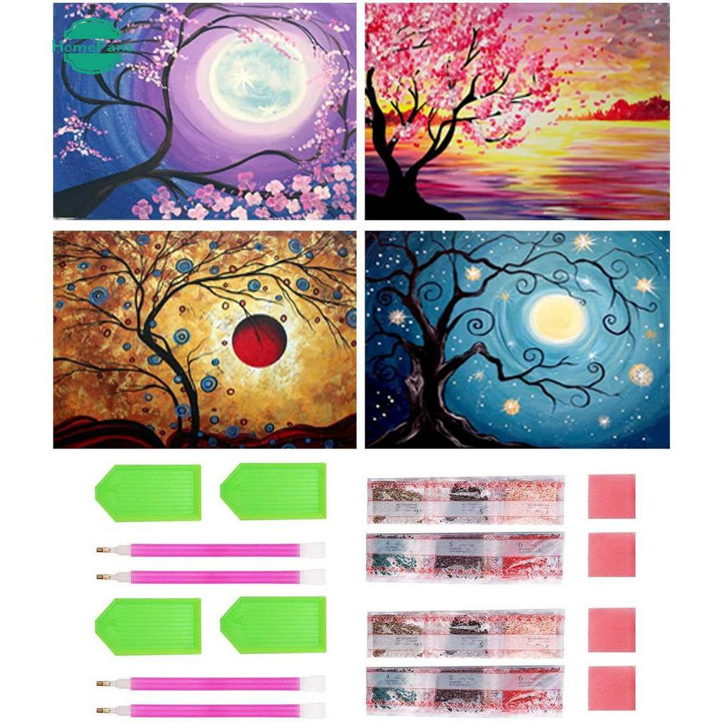 4 pattern 5D diamond painting full diamond sun and moon tree kit, abstract landscape DIY hand painted DIAMOND art home decoration (40 x 30cm)
