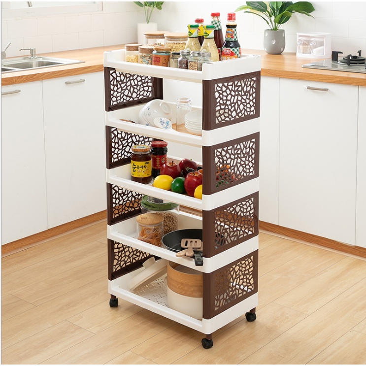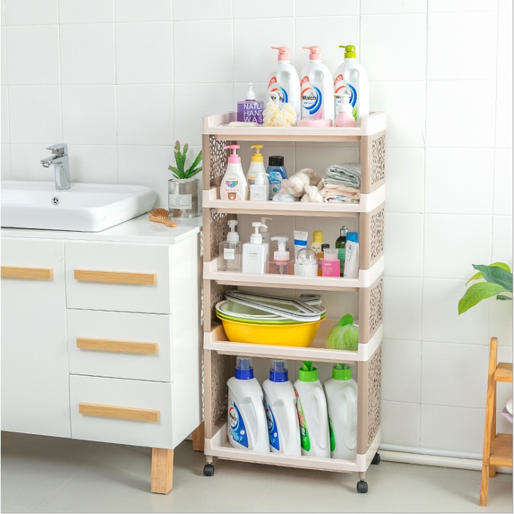 4 Tier Plastic Shelf With Wheels / 4 Tier Shelf / Multipurpose Kitchen Shelf