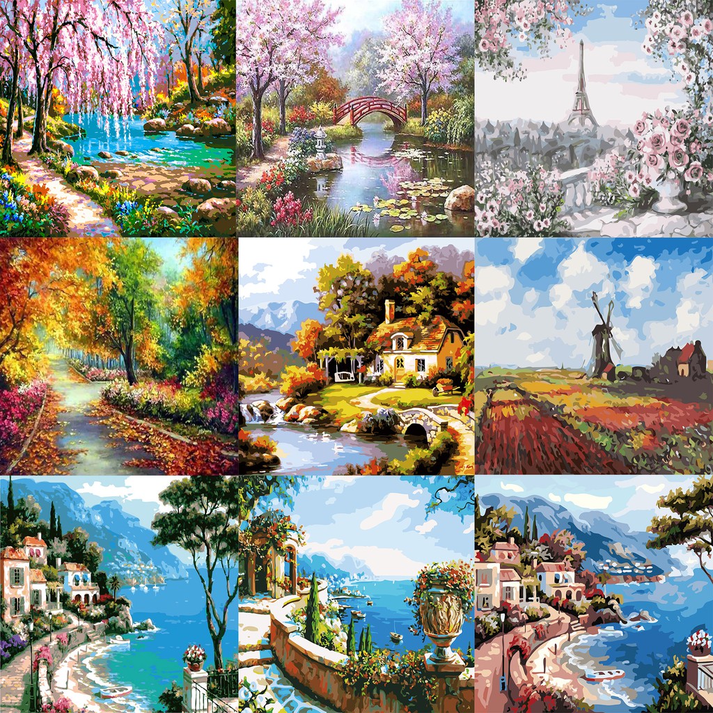 40×50CM Art Painting DIY Paint By Number For Adults Children Harbor Landscape Oil Painting HandPainted Drawing On Canvas