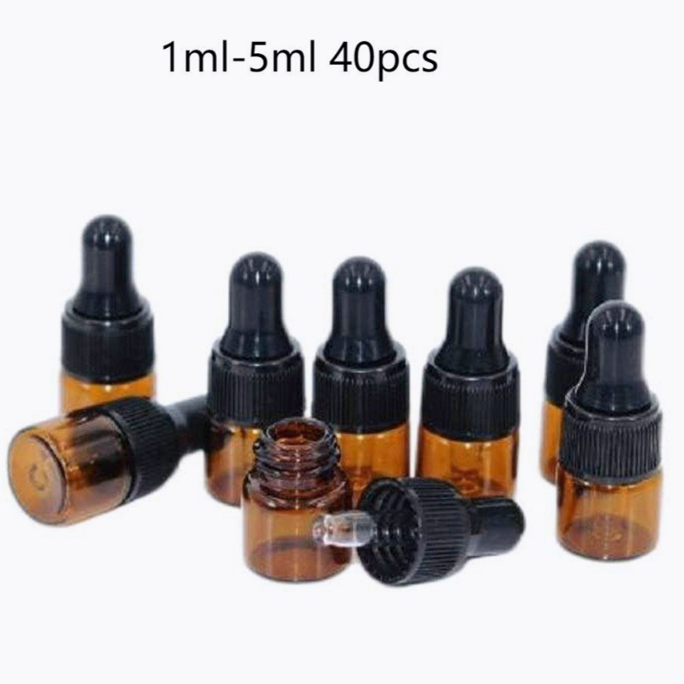 40 Pieces 1ml 2ml 3ml 5ml Amber Glass Empty Dropper Bottles,Essential Oil Sample Bottles Liquid Storage Jars,Chemcial Liquid Sample Bottles
