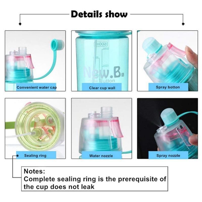 400 / 600ml Drinking Bottle Shaker Water Bottle Botol Air Minuman Mist Spray Sport Outdoor Bicycle Cycling Sports Gym