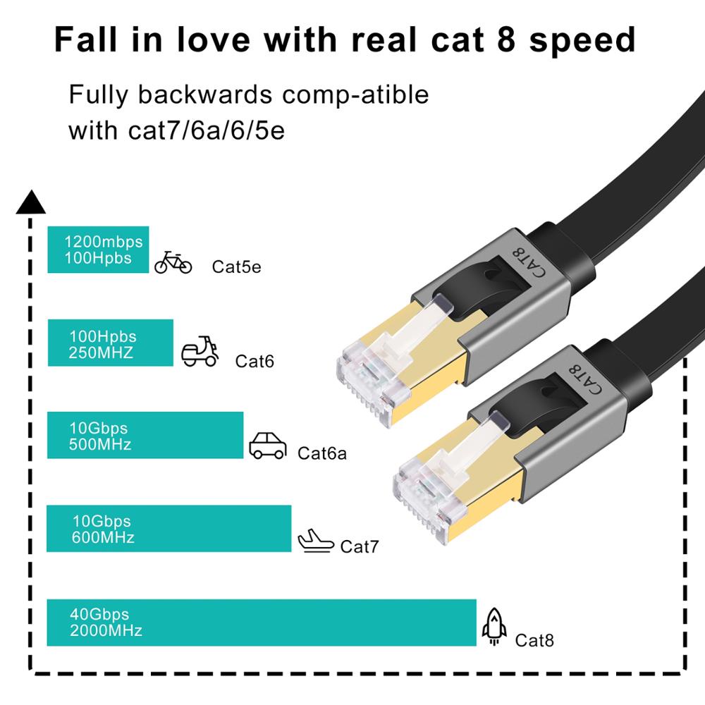 40Gbps LAN Cable Cat8 Ethernet Network Wire Connector High Speed Any Cast Cat 8 RJ45 for Router Modem Internet Streaming
