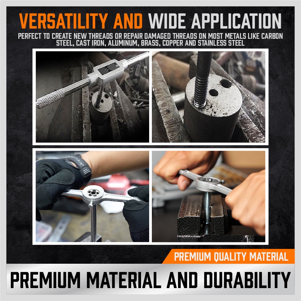 40Pcs M3-M12 Screw Nut Tap and Die Set with Wrenches and Thread Gauge Heavy Duty Hand Tools